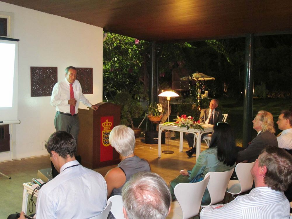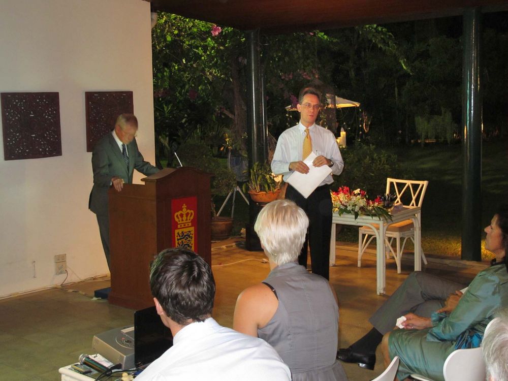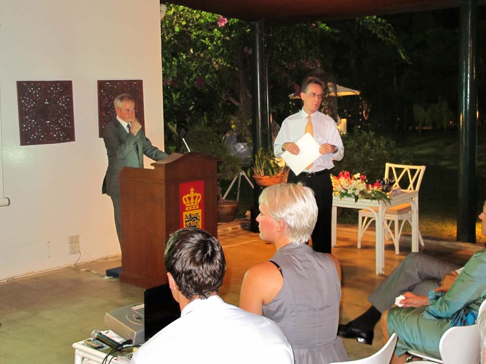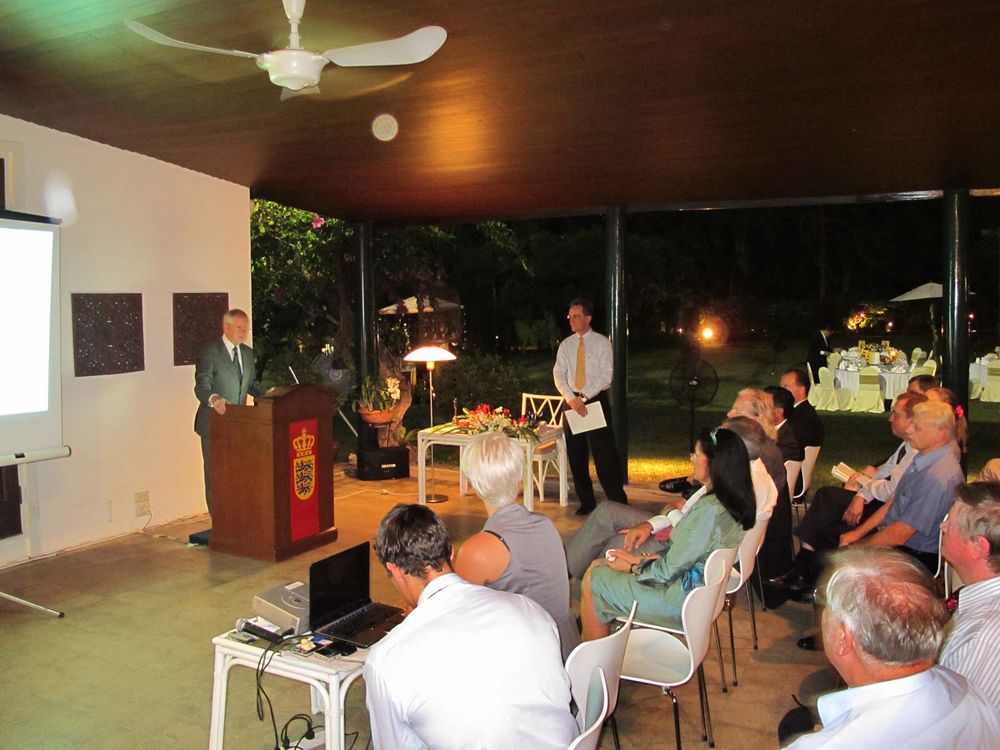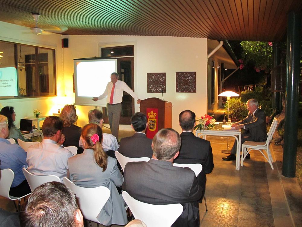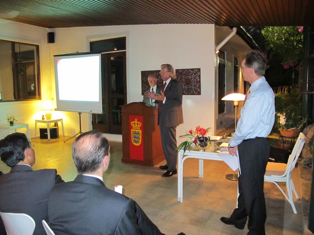 Encouraged by President Peter Romhild, the Ambassador also spoke on the current situation in Burma. The Ambassador said the consensus in Europe was that the isolation policy had failed and only hurt the population. A new policy of constructive engagement was thus initiated. The Danish foreign ministry would consequently open an office in Yangon manned by the experienced Danish diplomat Ulrich Sorensen as soon as formalities would be solved.