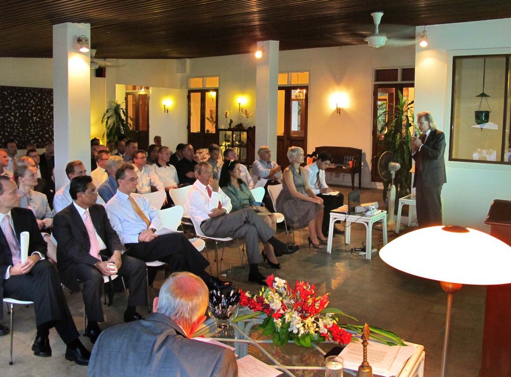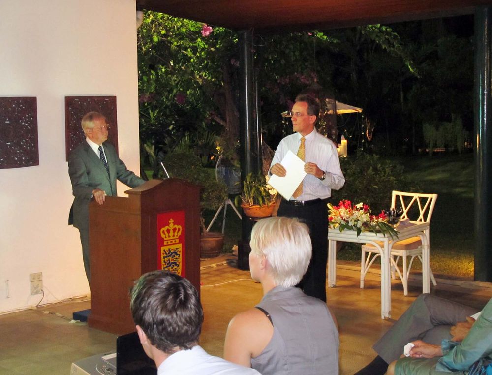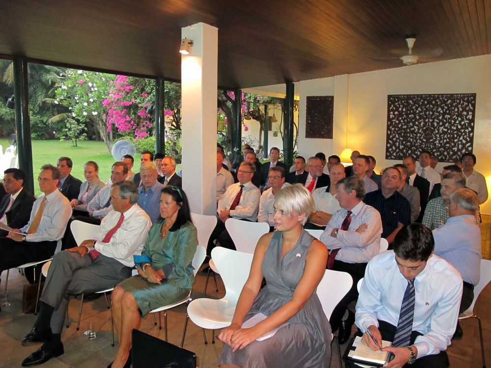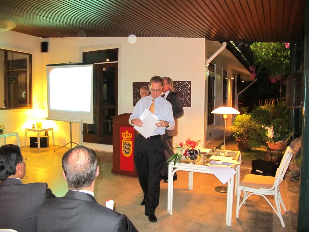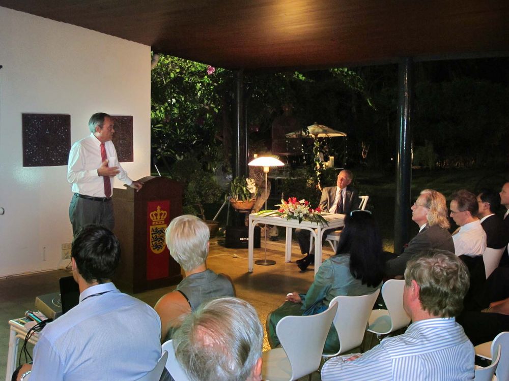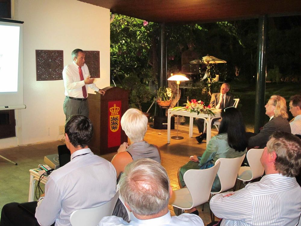 Encouraged by President Peter Romhild, the Ambassador also spoke on the current situation in Burma. The Ambassador said the consensus in Europe was that the isolation policy had failed and only hurt the population. A new policy of constructive engagement was thus initiated. The Danish foreign ministry would consequently open an office in Yangon manned by the experienced Danish diplomat Ulrich Sorensen as soon as formalities would be solved.