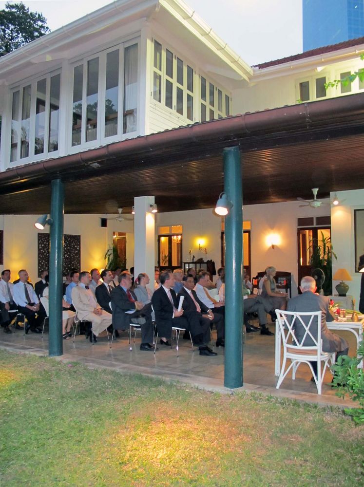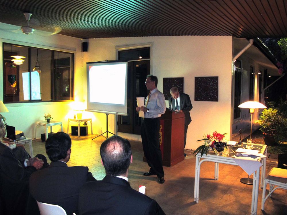 After the meeting, some fifty members continued to enjoy the evening in the garden of the Ambassador and his wife where an excellent seafood dinner was served.