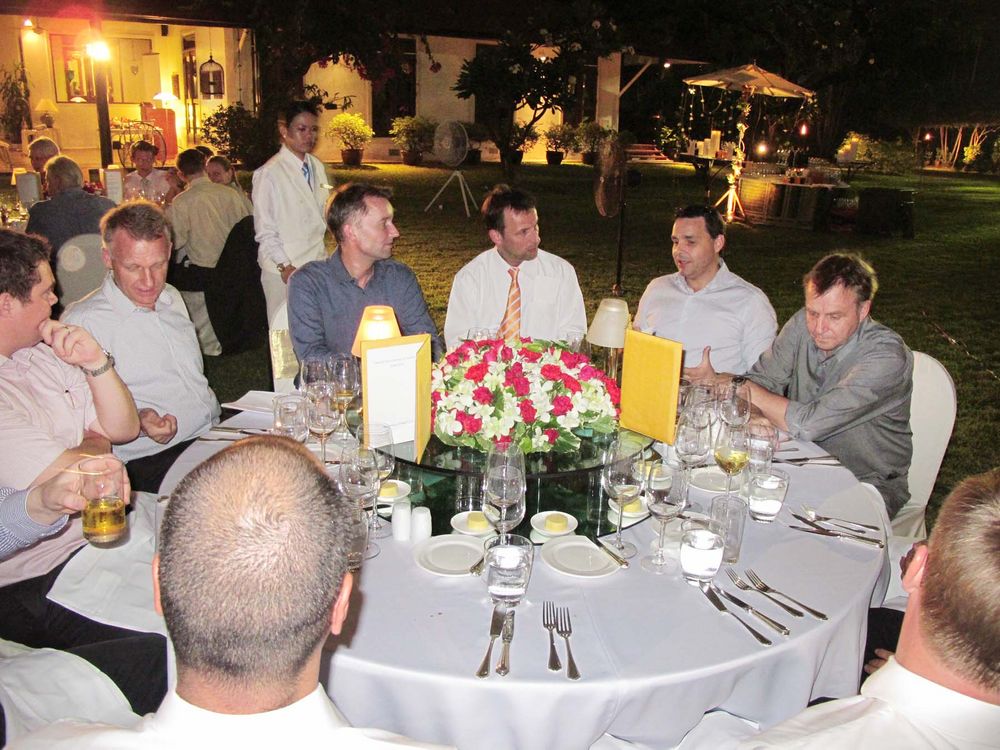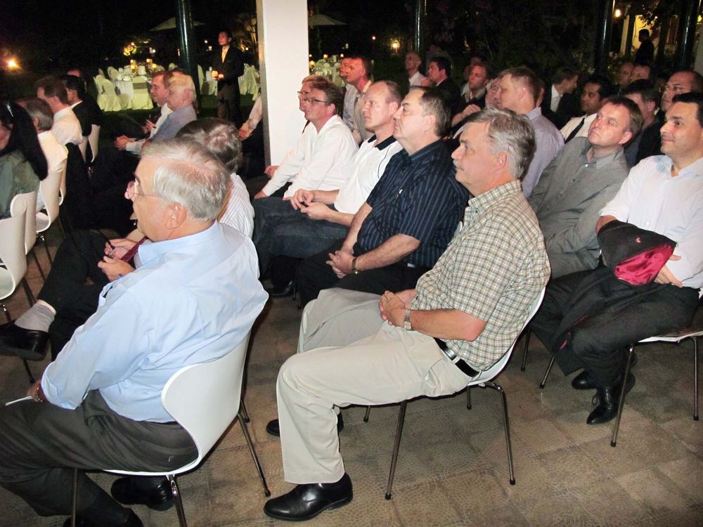 Peter Romhild concluded the Annual General Meeting with presenting Mrs. Waltrud Sternberg with a bouquet of flowers as a sign of gratitude from the members for once again to be able to hold the Annual Meeting of the Danish Thai Chamber of Commerce in the beautiful home of the Ambassador and his wife.
