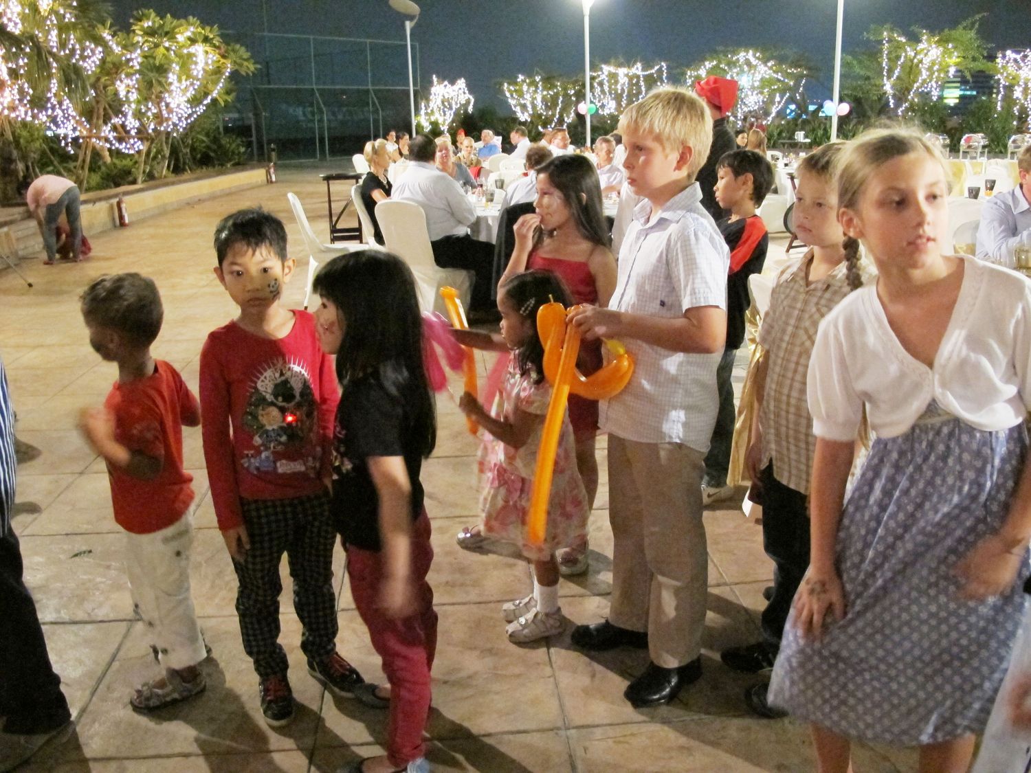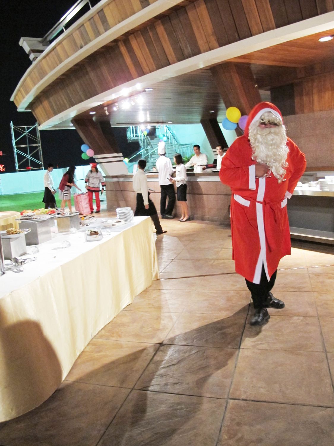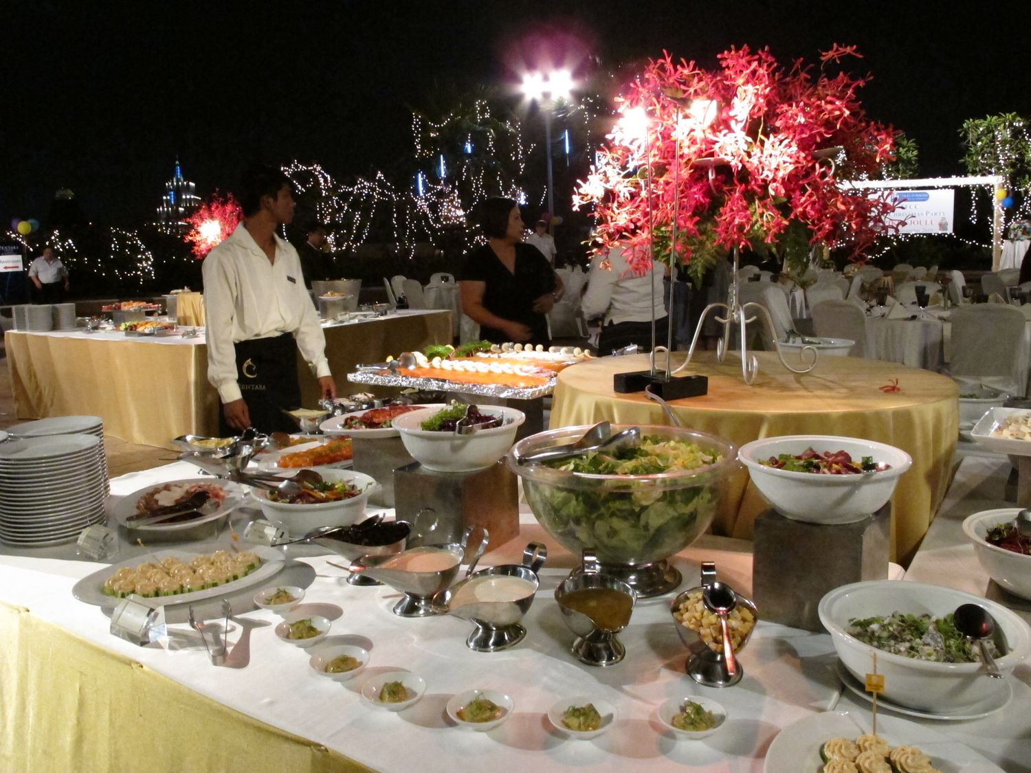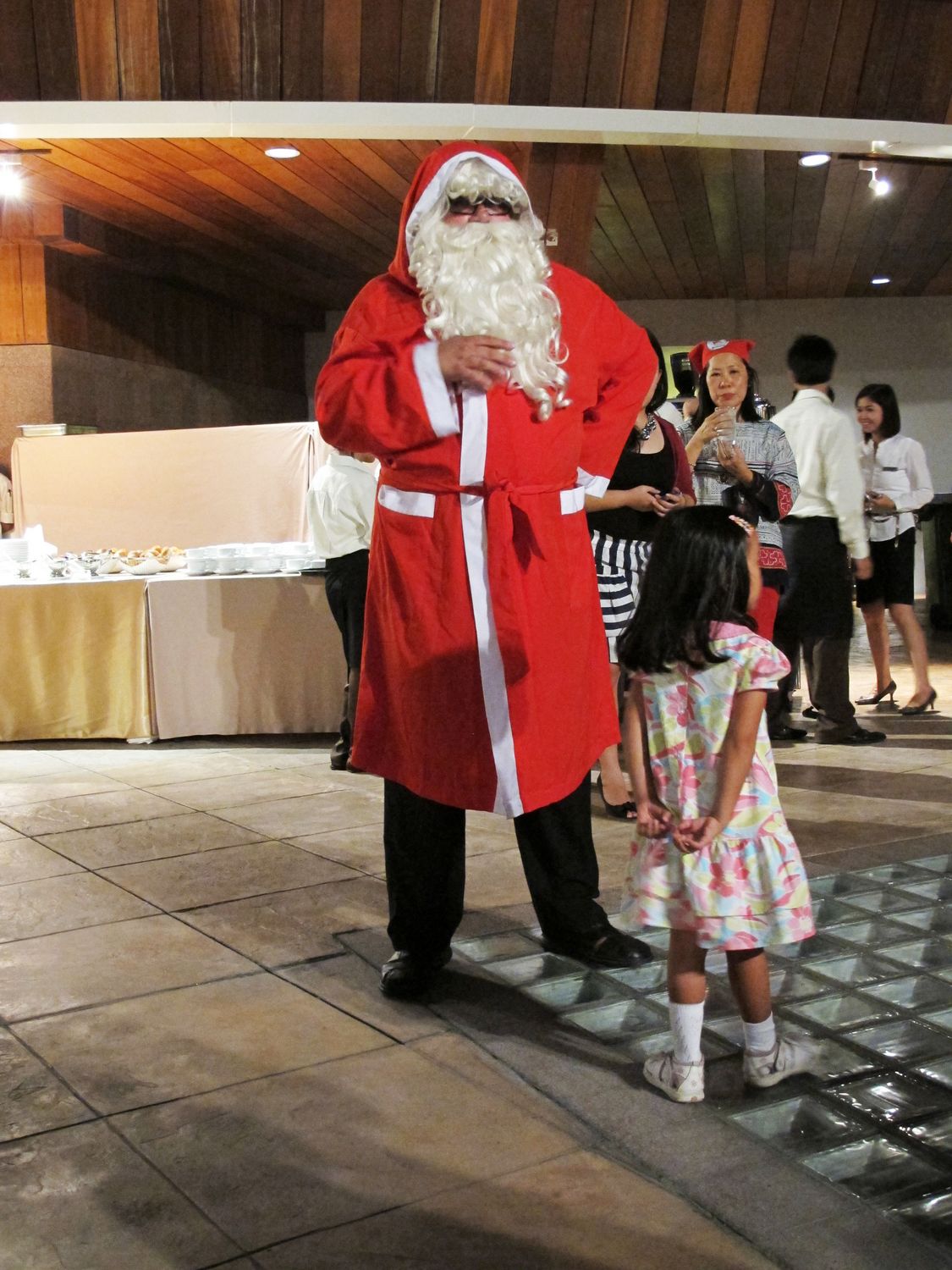 Warm Glögg was served as welcome drink. All participants also enjoyed the Scandinavian Buffet line along with imported wine and Warsteiner beer. The kids had a great time with the Puppet Show from Finland presented by Juha Laukkanen, magic show, singing of Christmas songs, and games. Surprisingly the Santa Claus came with a big present bag! All the kids and even the adults were excited. After dinner, more giveaway presents were won by lucky participants who had bought lottery tickets.