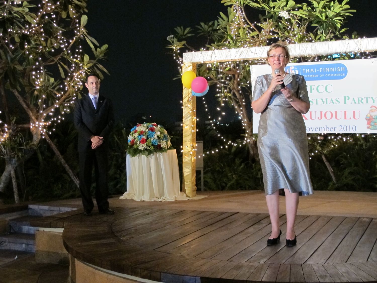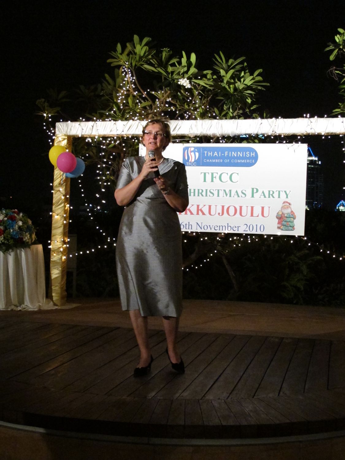 The event was arranged on the 26th floor where the 110 participants could see the sparkling Bangkok city in the night from a birds-eye-view. The Finnish Ambassador Sirpa Mäenpää presided over the evening.