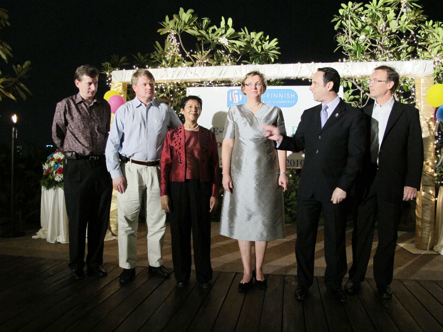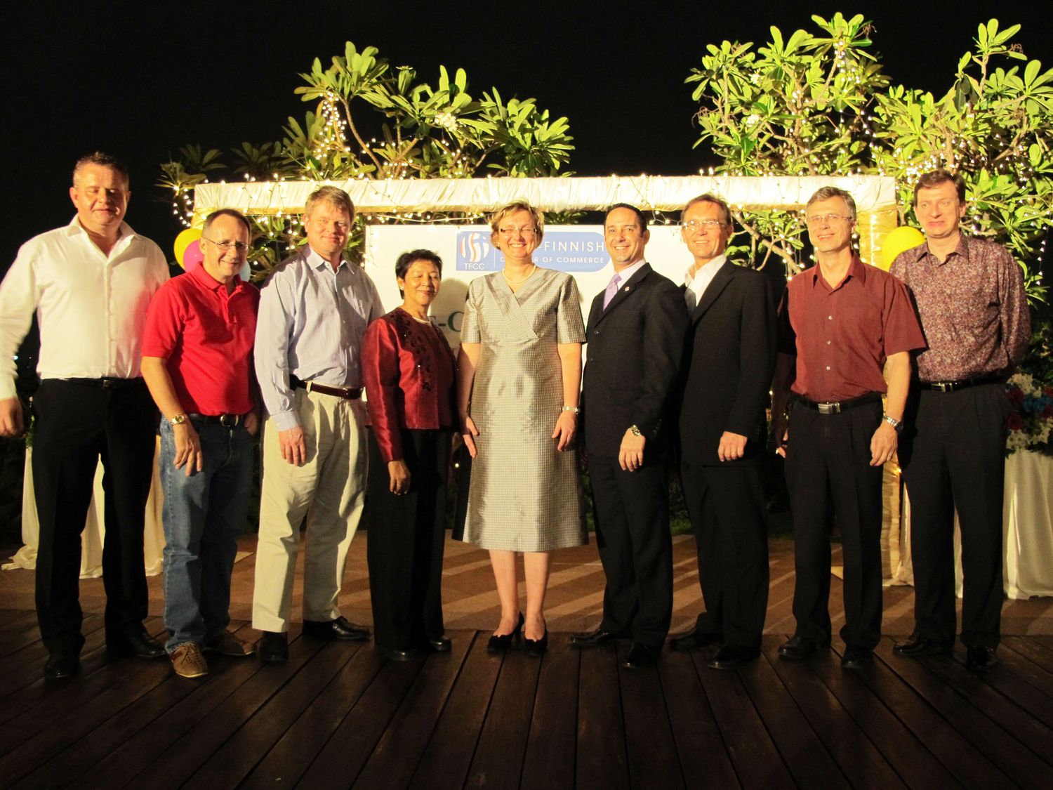 The group photo in the gallery below is from left: Vice President Lars Londal, Managing Director, Booking Anywhere Co., Ltd.; Jukka Koivistoinen, General Manager, Logonet (Thailand) Co., Ltd.; Jukka Raikkonen, Head of Business Development, Sub Region Asia North, Nokia Siemens Networks (Thailand) Ltd.; Secretary Ms. Santi Chatterjee, Managing Director, S.C. Management Consultants Co., Ltd.; H.E. Ambassador Sirpa Maenpaa; TFCC President Marc Spiegel, Managing Director, KONE Thai Lift PCL.; Executive Vice President Esko Jaalinoja, Area Director, AF-Consult Ltd.; Treasurer Jouni Satola, Managing Director, Luvata Hitachi Cable (Thailand) Ltd., Kai Tuorila, Director, Netpoint S.E.A. Ltd. (Finpro Thailand)