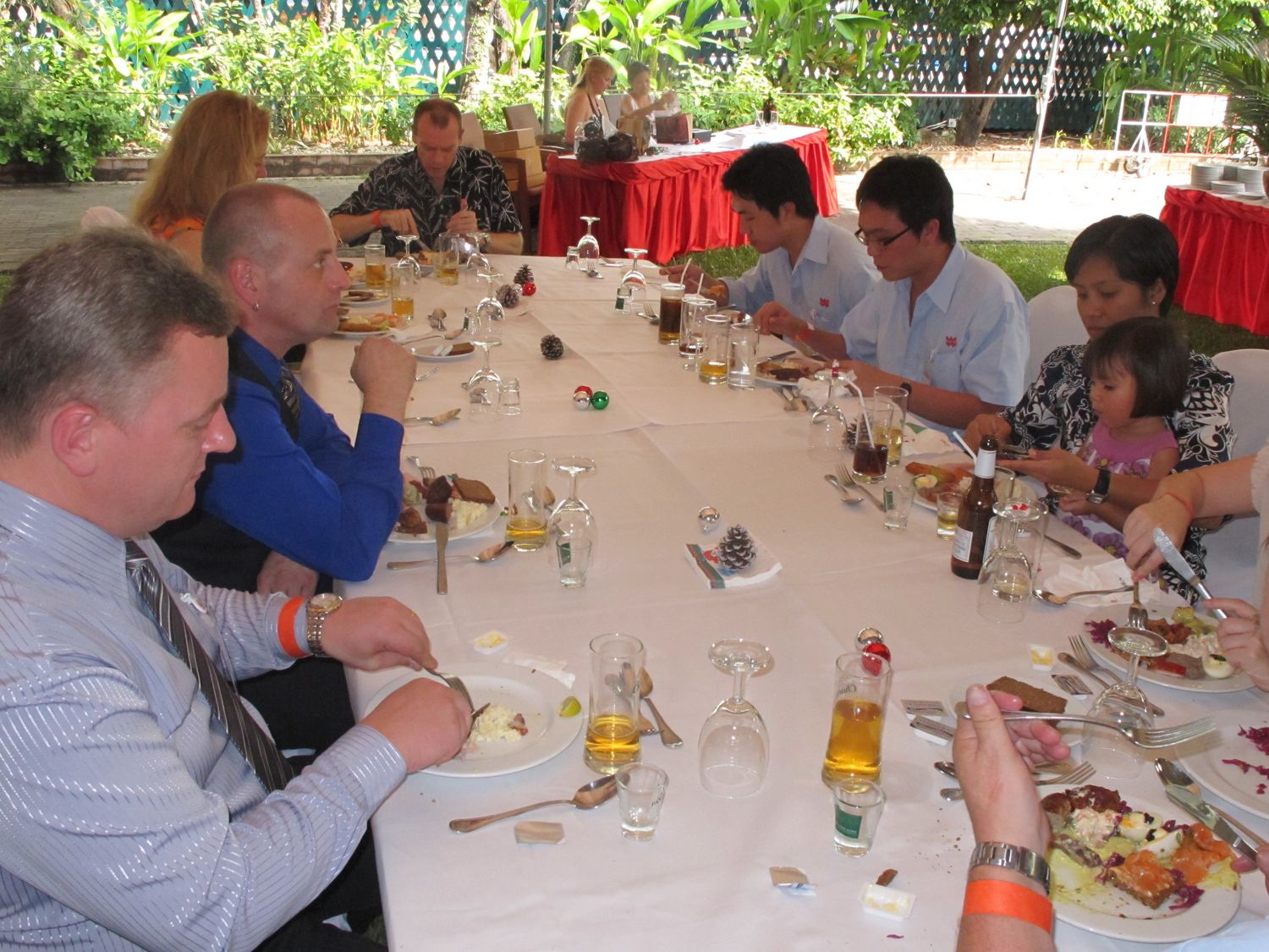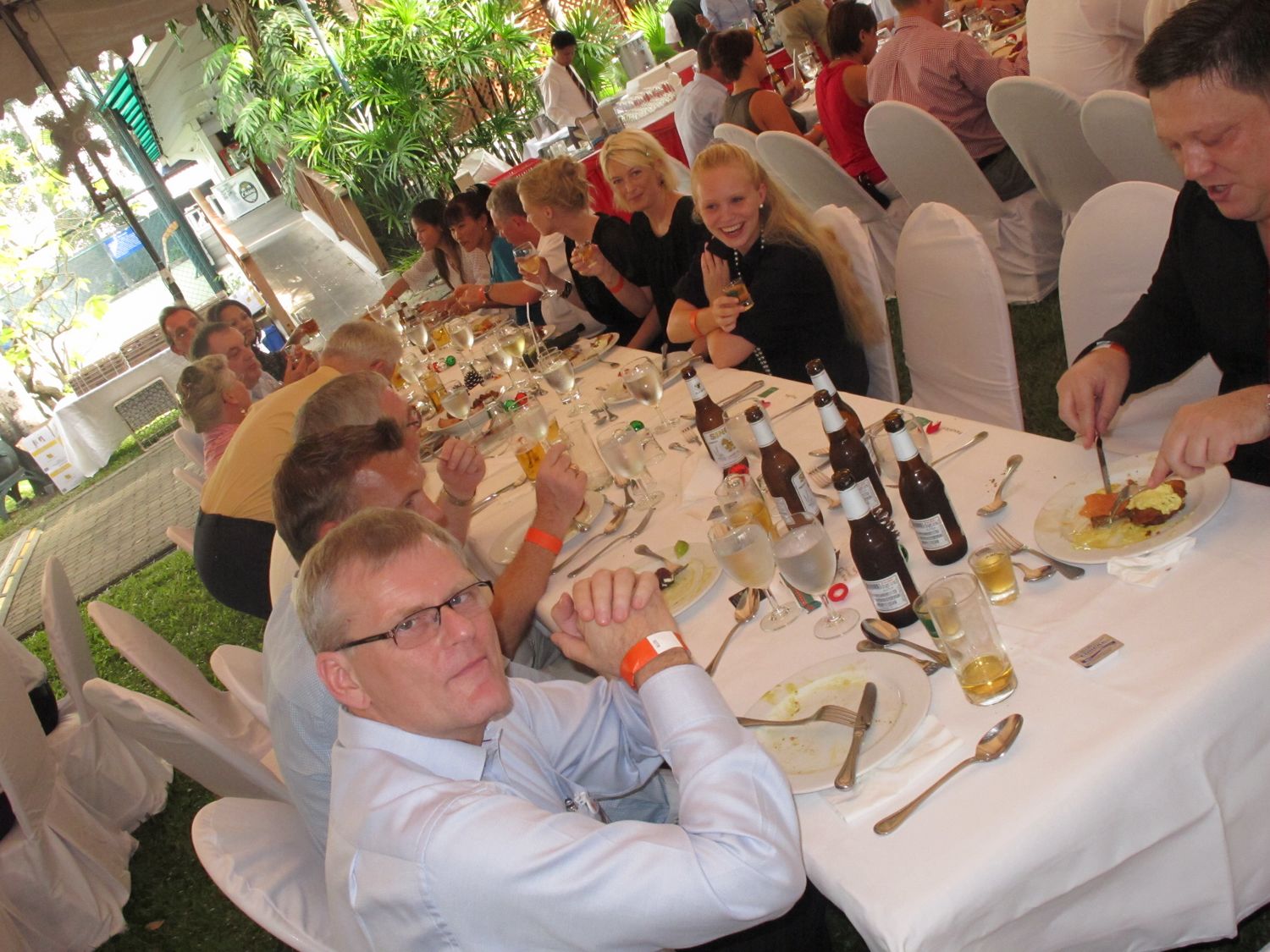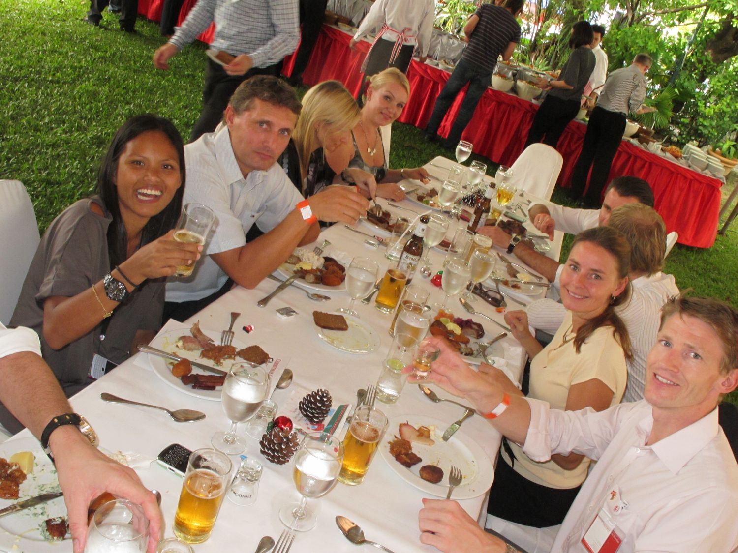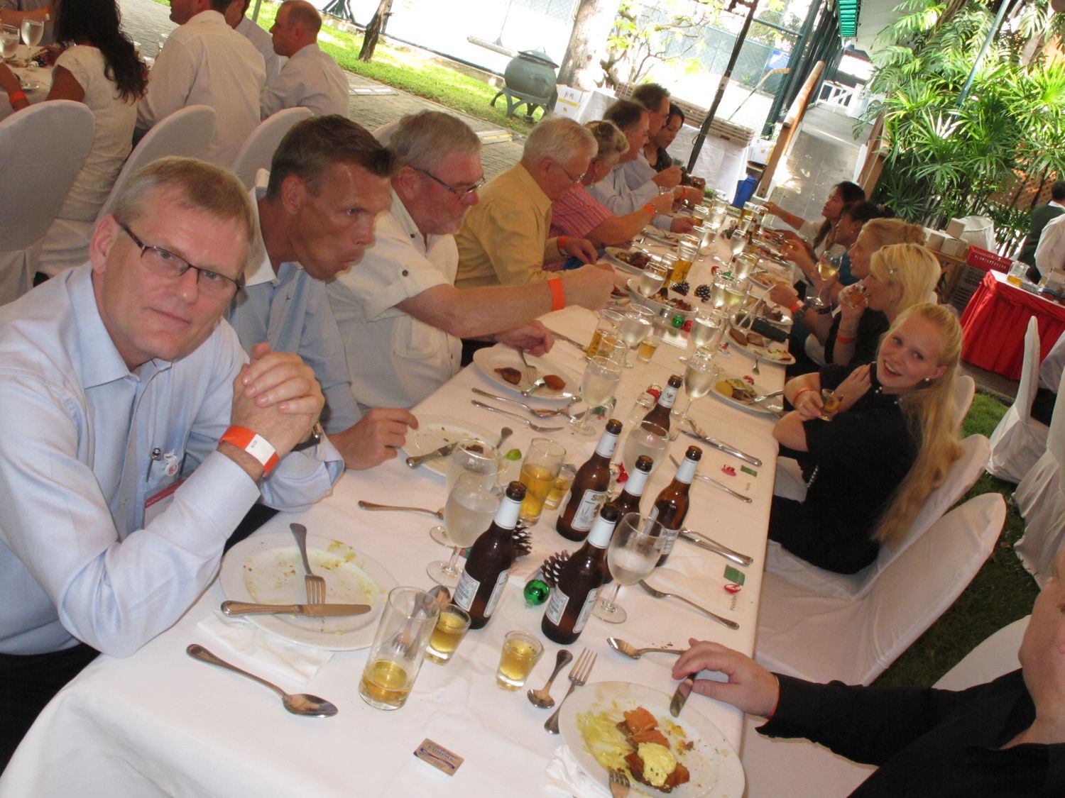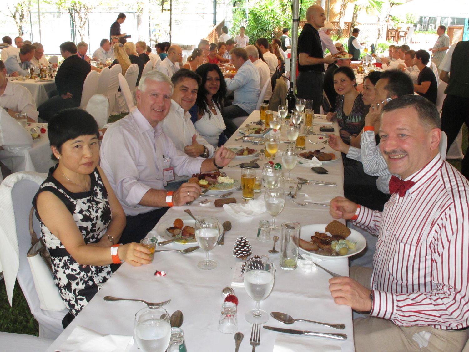 Danish-Thai Chamber of Commerce’ Christmas Lunch took this year place in the garden of The British Club on Friday November 26 with participation if more than 200 members and guests – again more than ever before. The event was sponsored by Jyske Bank (Schweiz) AG & Pandora and featured the Danish chef Henrik Boserup who had helped Stable Lodge prepare a large buffet with traditonal Danish “julemad”.