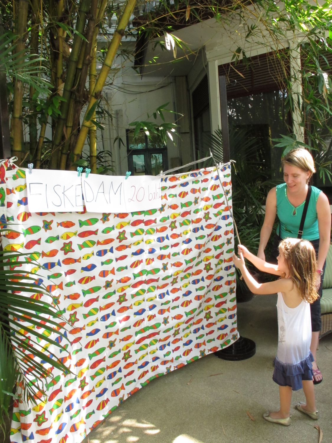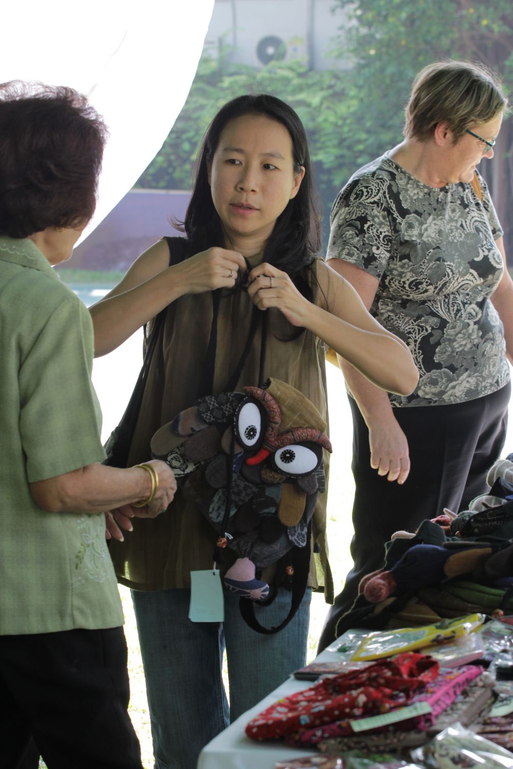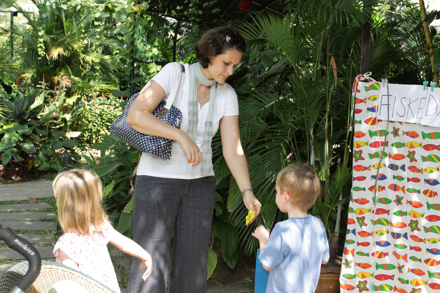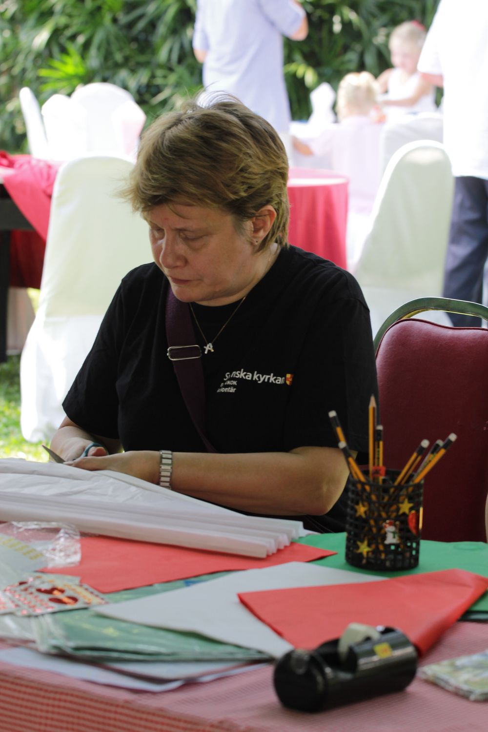 The Minister Lovisa Moller held the advent service while the bazaar was being set up in the Club backyard. When the participants came down, they shopped around through the stalls for gift from the Association Internationale Des Charités (AIC) or the leather purse shop, tasted cookies from Tentation Macaron homemade bakery, shopped glogg and more cookies from the Swedish Church, learned about oriental carpets from Alex’ shop, and registered for subscription at the ScandAsia table. Most of the visitors also used the opportunity to have lunch with friends and newcomers from the restaurant of the British Club. For the kids, the “fiskedam” was probably the best stand at the event. Every time they tried to fish they won some candy and toys from behind the curtain.