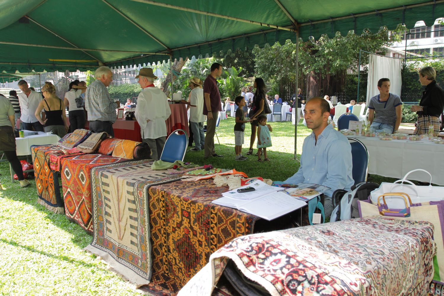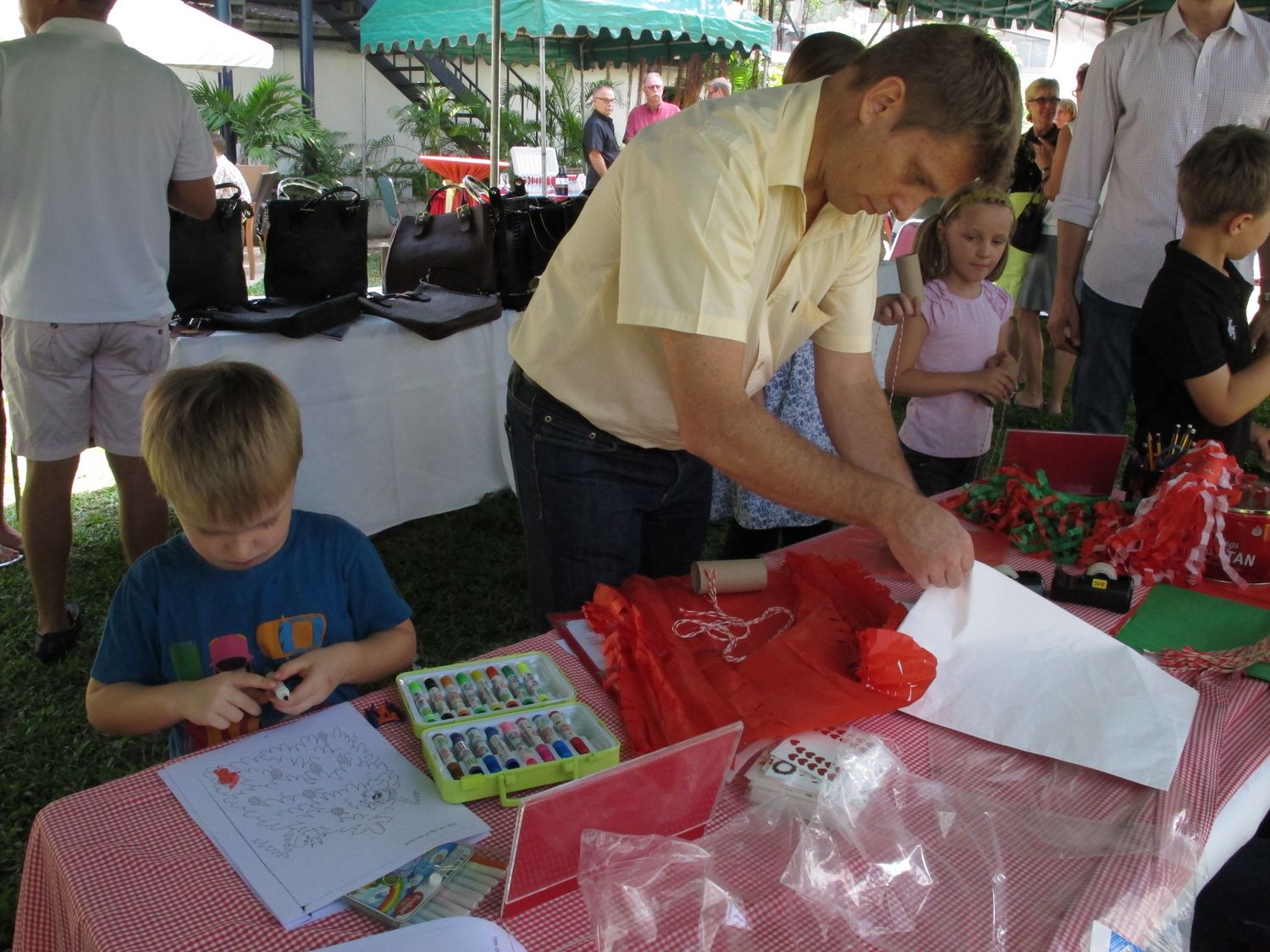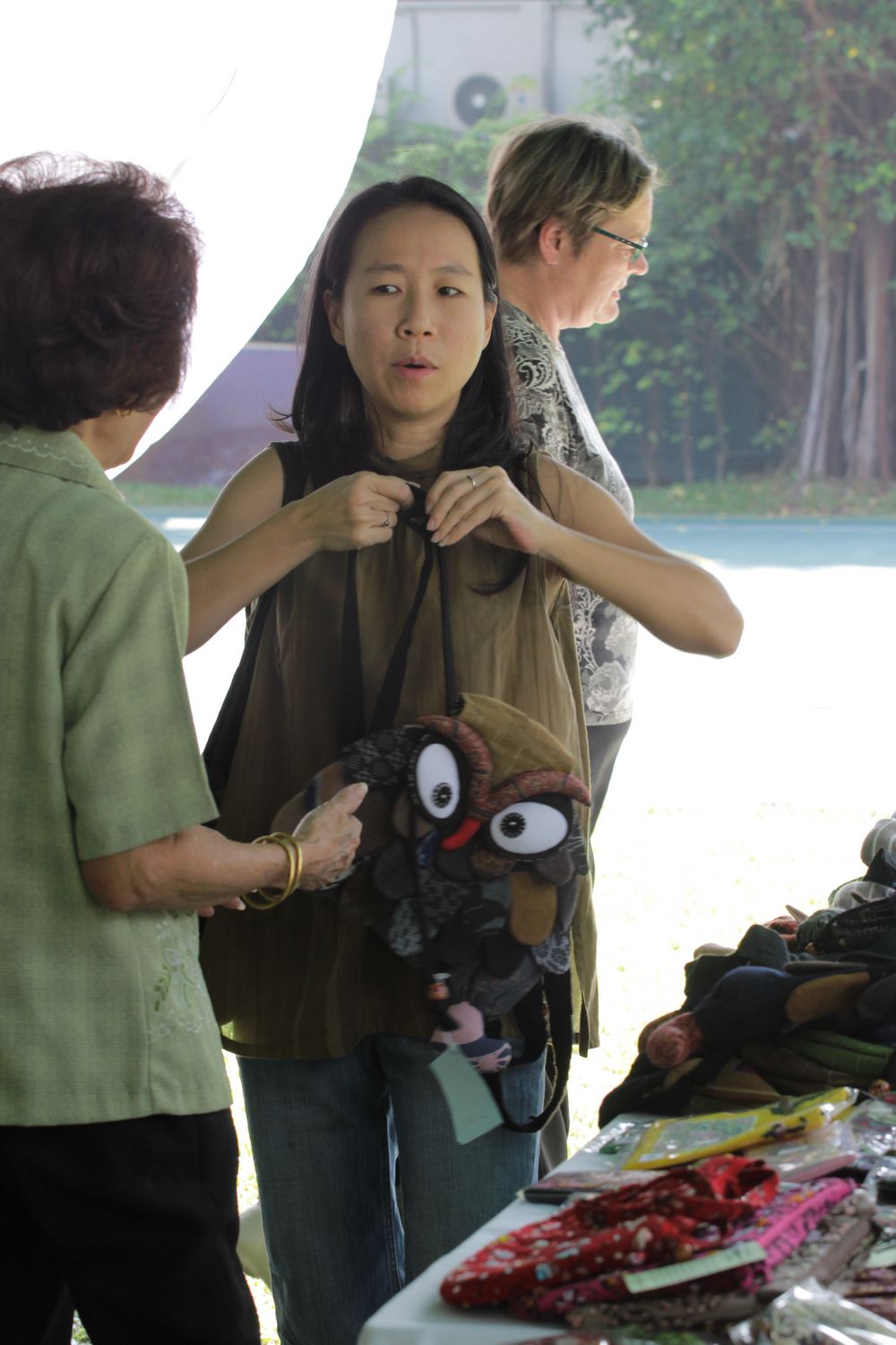 The Minister Lovisa Moller held the advent service while the bazaar was being set up in the Club backyard. When the participants came down, they shopped around through the stalls for gift from the Association Internationale Des Charités (AIC) or the leather purse shop, tasted cookies from Tentation Macaron homemade bakery, shopped glogg and more cookies from the Swedish Church, learned about oriental carpets from Alex’ shop, and registered for subscription at the ScandAsia table. Most of the visitors also used the opportunity to have lunch with friends and newcomers from the restaurant of the British Club. For the kids, the “fiskedam” was probably the best stand at the event. Every time they tried to fish they won some candy and toys from behind the curtain.