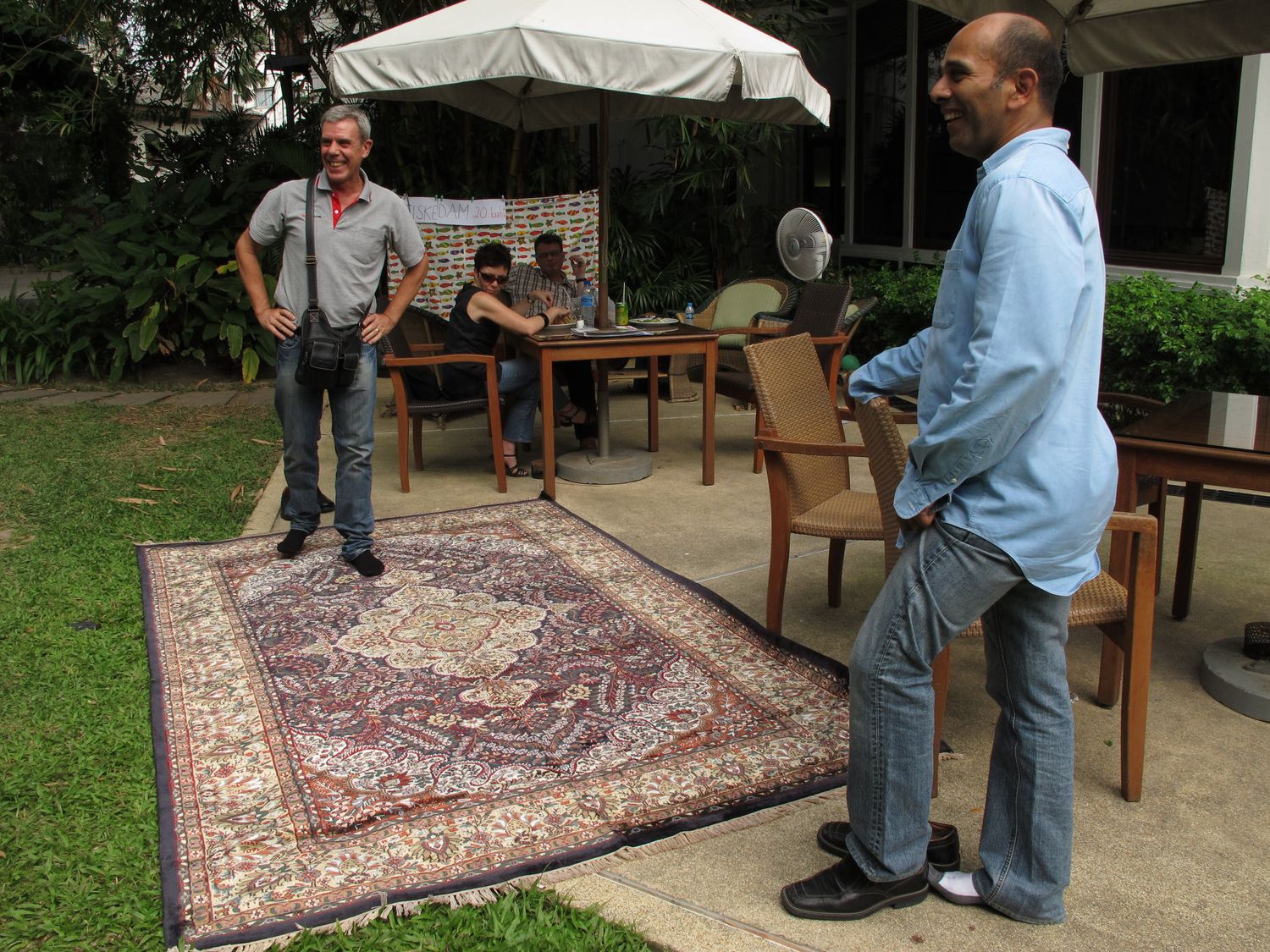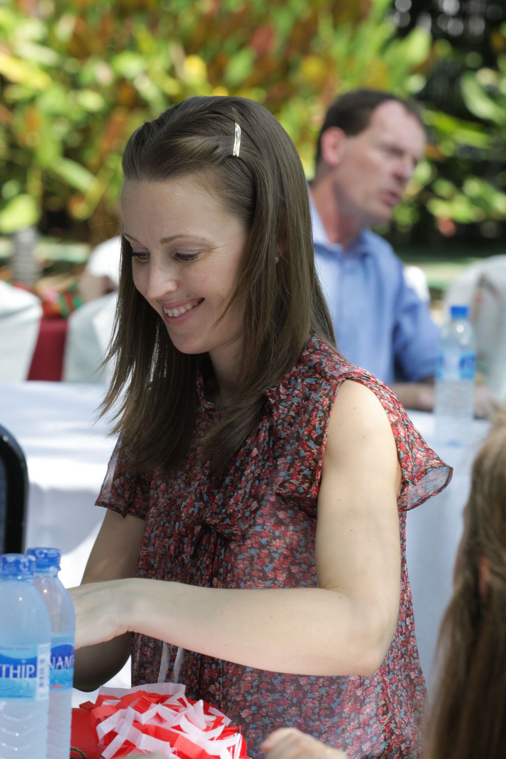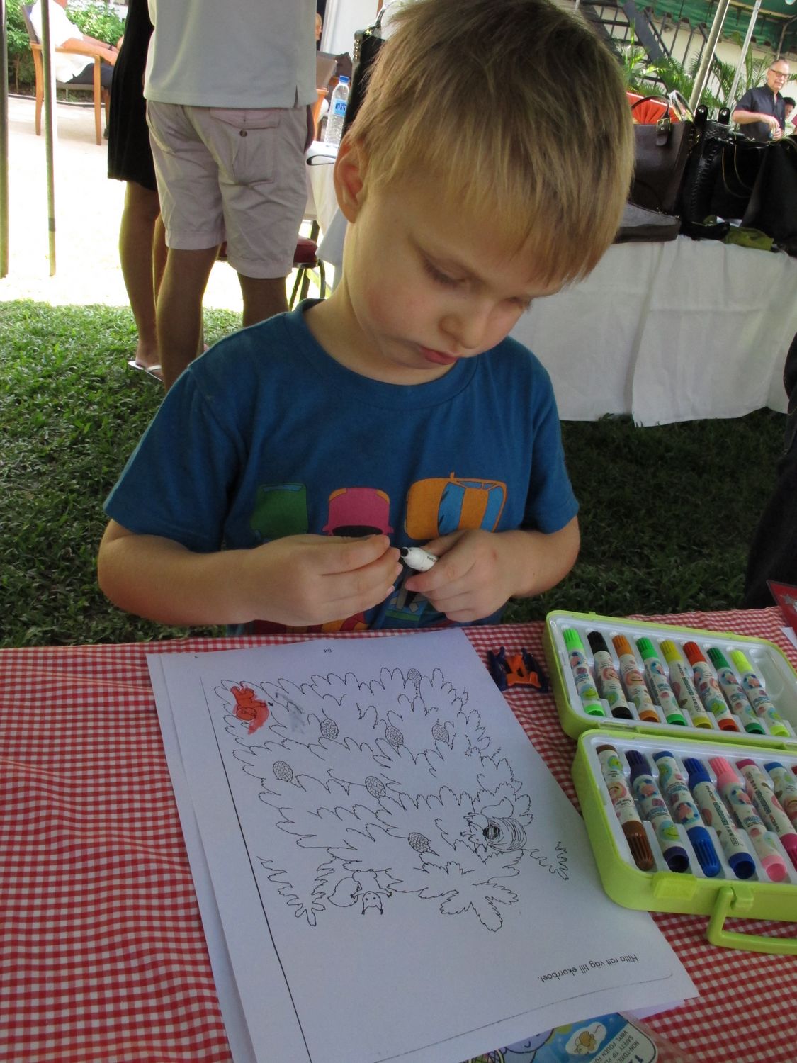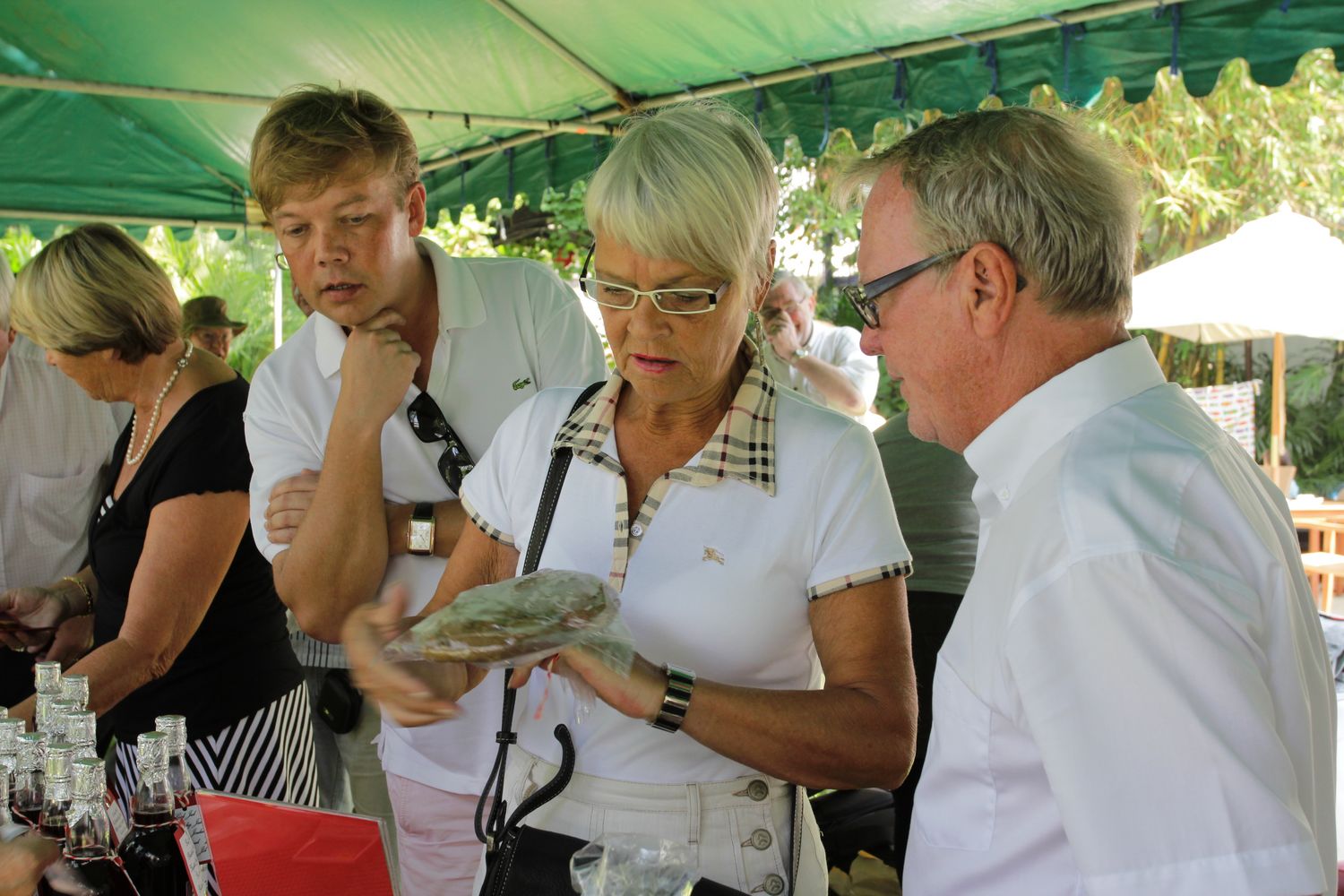 The Minister Lovisa Moller held the advent service while the bazaar was being set up in the Club backyard. When the participants came down, they shopped around through the stalls for gift from the Association Internationale Des Charités (AIC) or the leather purse shop, tasted cookies from Tentation Macaron homemade bakery, shopped glogg and more cookies from the Swedish Church, learned about oriental carpets from Alex’ shop, and registered for subscription at the ScandAsia table. Most of the visitors also used the opportunity to have lunch with friends and newcomers from the restaurant of the British Club. For the kids, the “fiskedam” was probably the best stand at the event. Every time they tried to fish they won some candy and toys from behind the curtain.