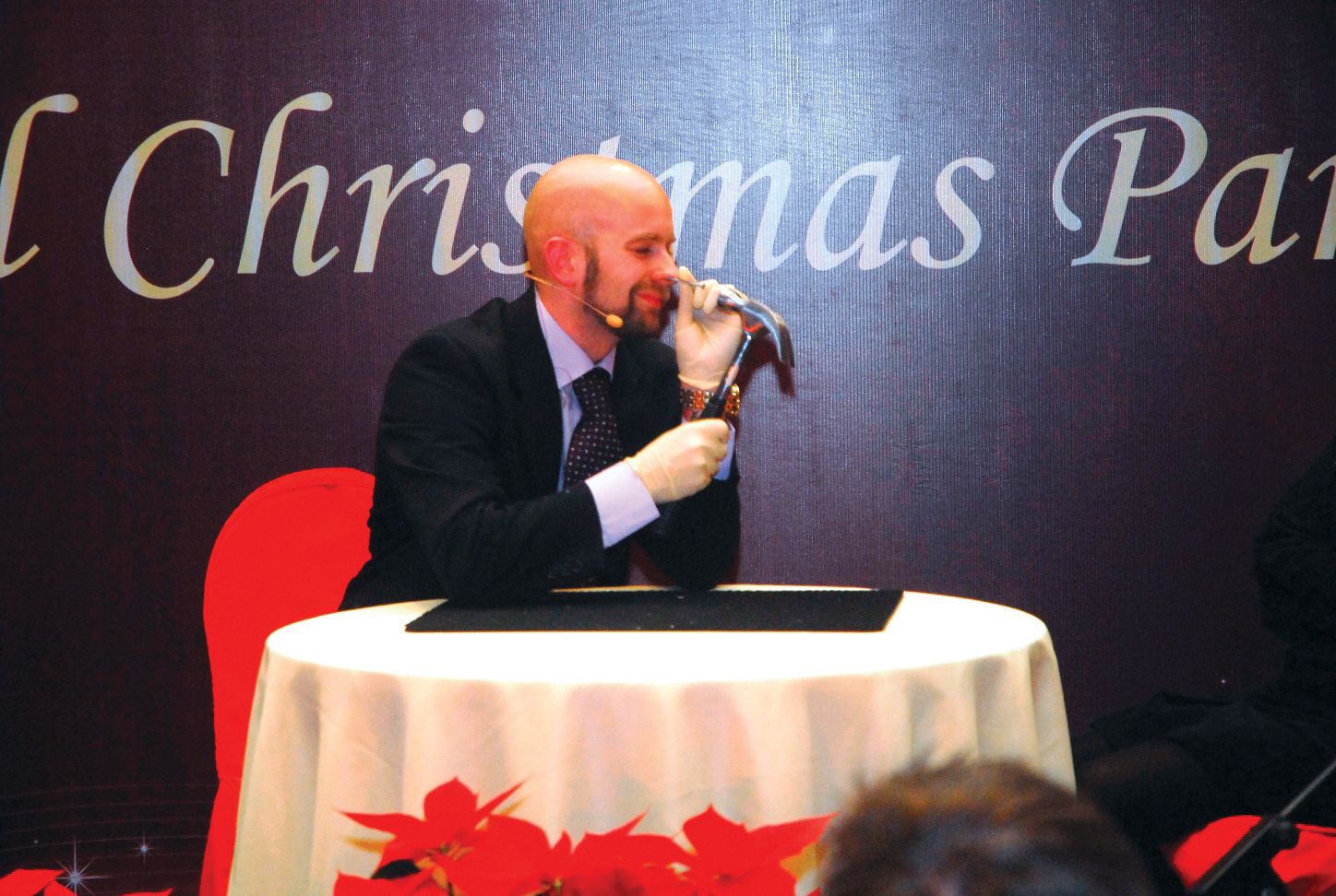 The evening started off with a Swedish “Lucia tåg”, Lucia came singing with her maids dressed in long white shirts with glitter in their hair. While the boys were wearing a traditional pointed caps and carrying a star on a stick. Later on we all got fascinated by the secret world of magic, with a healthy dose of humor, excitement and astonishing entertainment, Claes Danell and Riku Koponen took us on a trip that made us all question our free will. With mind reading, predictions, mind control and “psychological illusions they made the impossible possible.