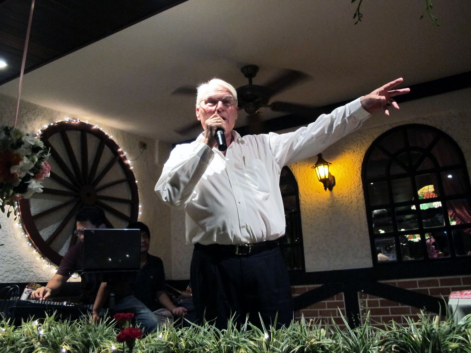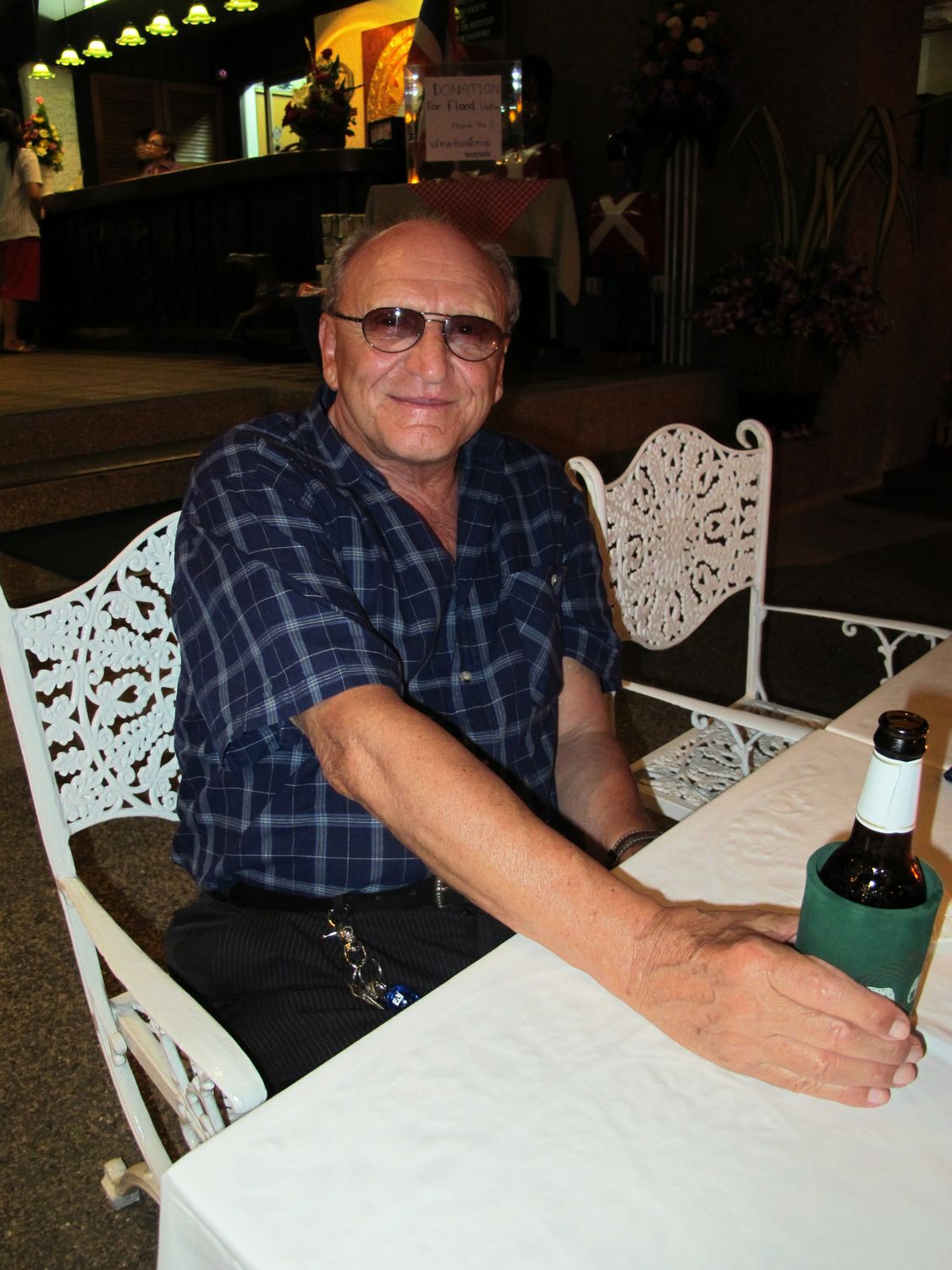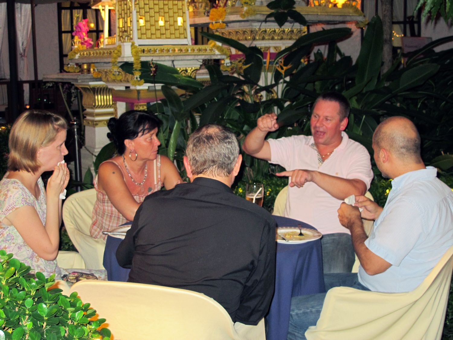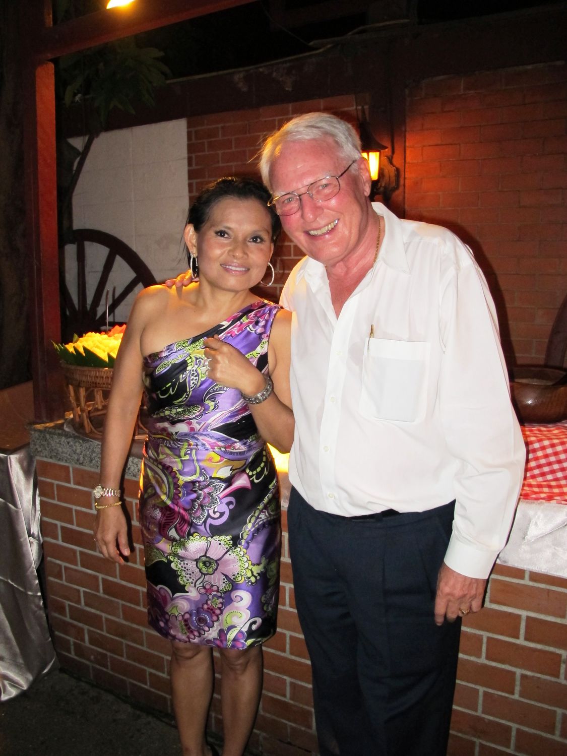 “Tonight we will have dinner together and please donate to help flood victim in Thailand. Earlier this evening, my wife jumped into the pool to get the money that one of you threw there. Just give it to her, don’t let her jump again!”