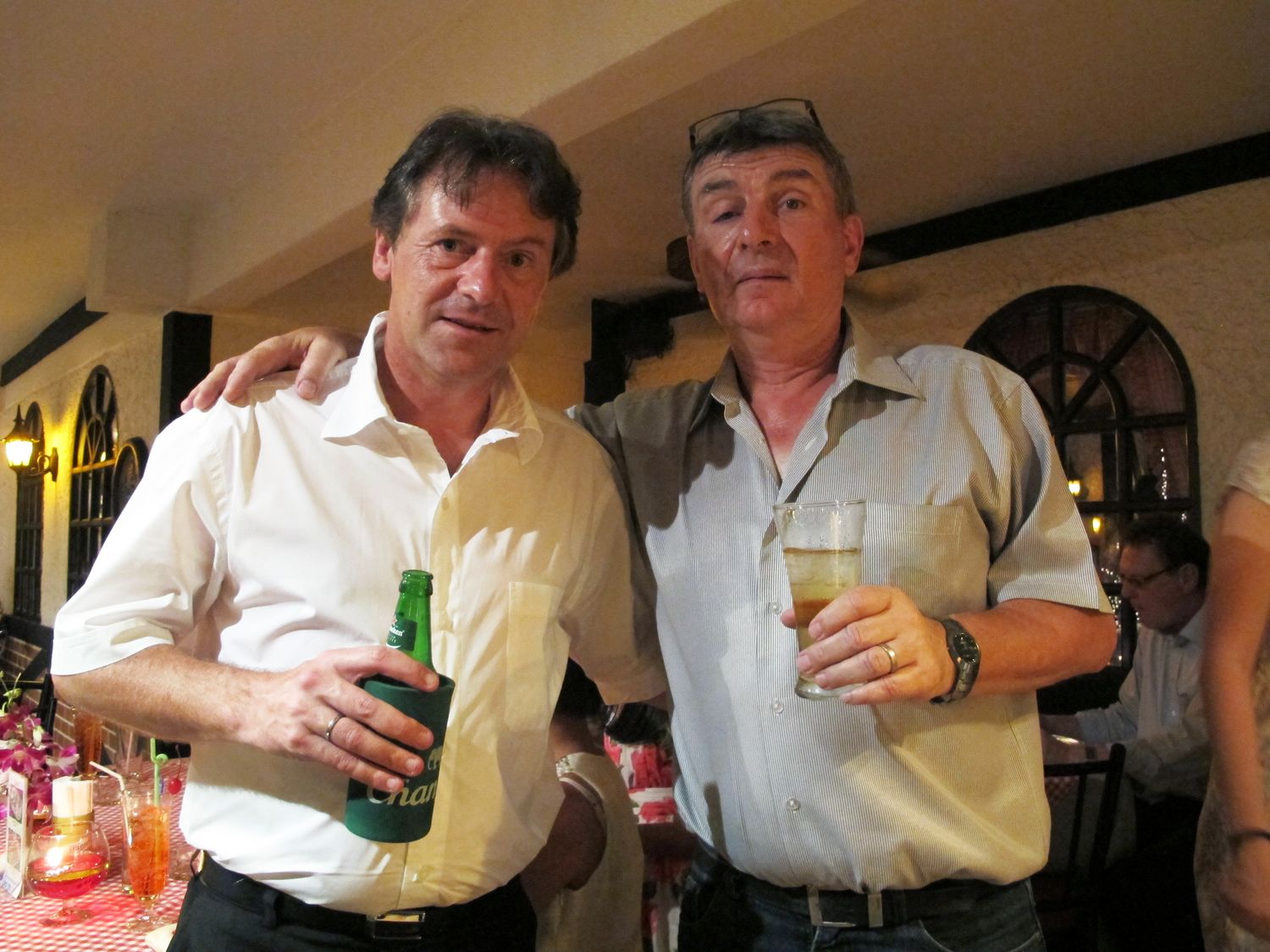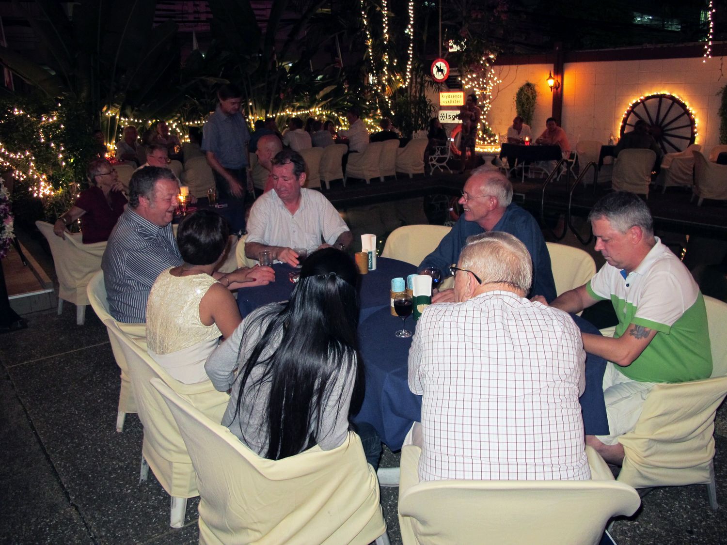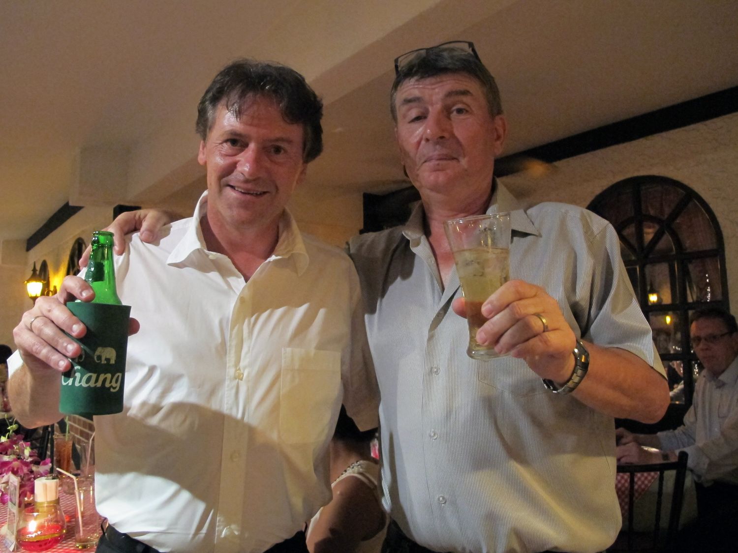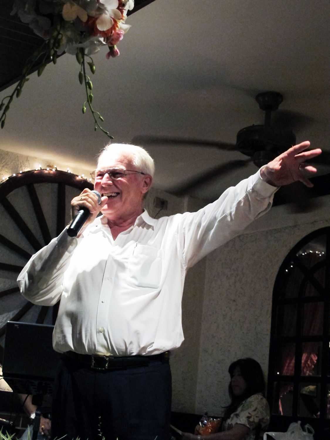 “Tonight we will have dinner together and please donate to help flood victim in Thailand. Earlier this evening, my wife jumped into the pool to get the money that one of you threw there. Just give it to her, don’t let her jump again!”