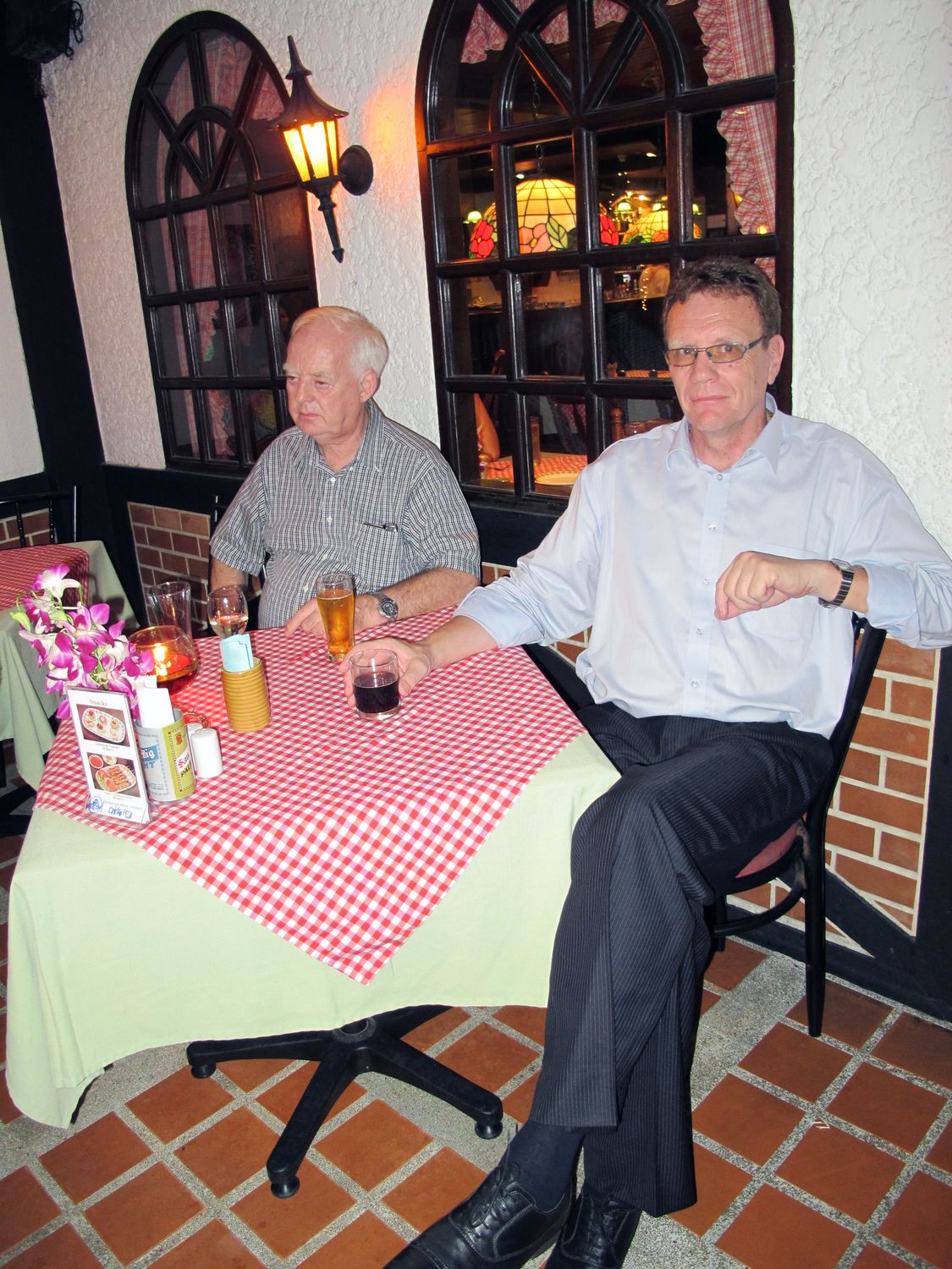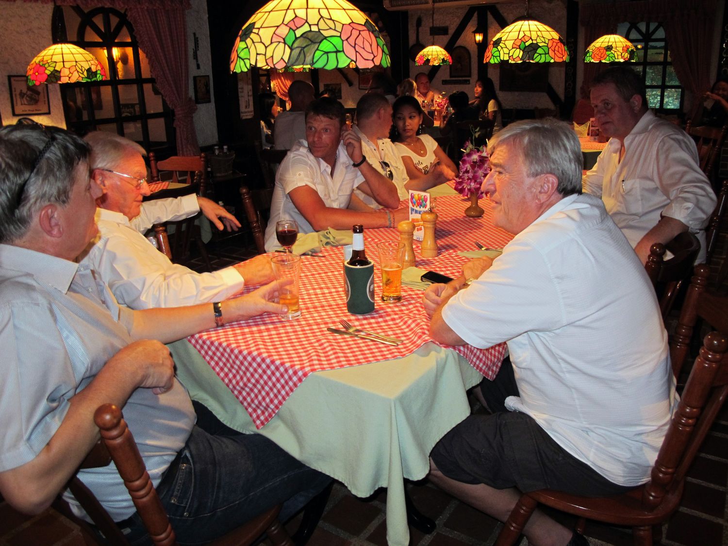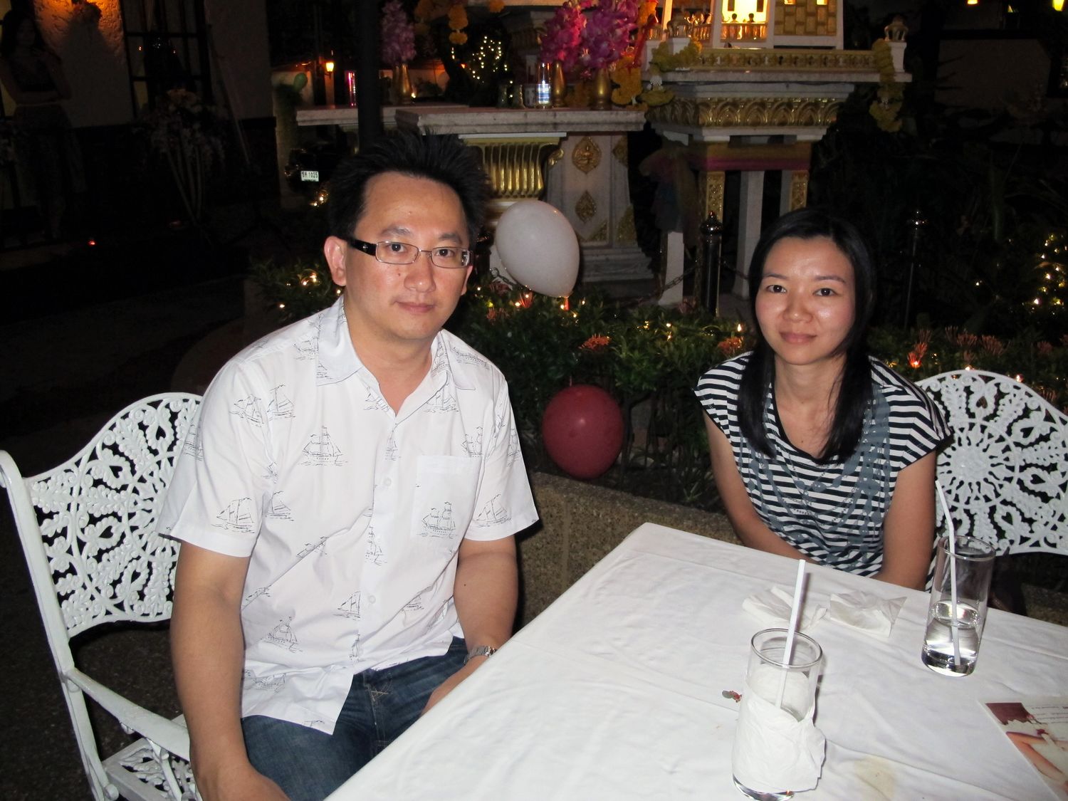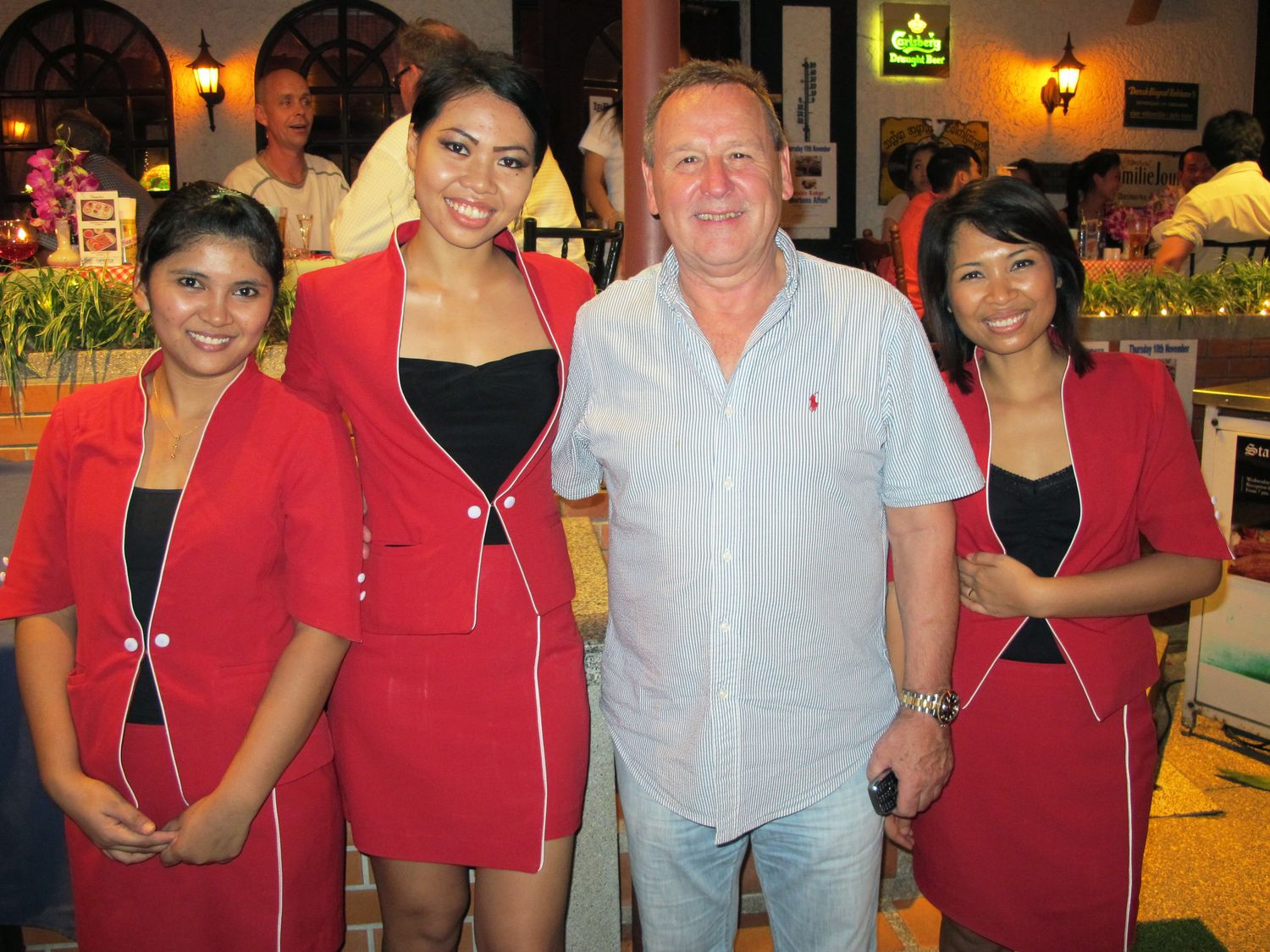 “Tonight we will have dinner together and please donate to help flood victim in Thailand. Earlier this evening, my wife jumped into the pool to get the money that one of you threw there. Just give it to her, don’t let her jump again!”