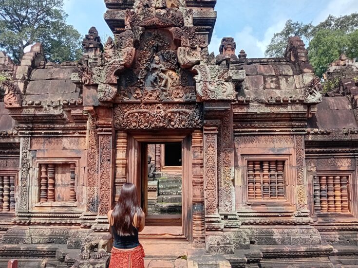 Next morning, our first visit was to Banteay Srei, the “lady temple “built of pink sandstone and located about 45 kilometers outside the city. Incredible impressive, with a truly stunning backdrop for photos.