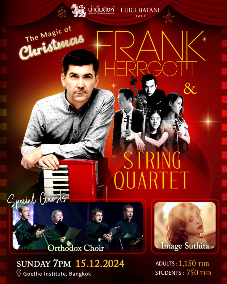 There have been some great concerts e.g., the Frenchman Frank Herrgott, had a Piano solo recital at the Yamaha Music Hall at Siam Pathumwan House on the 6th of December, as well as on Sunday the 15th at the Goethe Institute, with some special guests. I’m sure we will see and hear more of Frank in 2025.