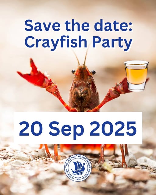 The Thai-Nordic Association has announced the date for its iconic annual Crayfish Party: Saturday 20 September 2025. As always, the event will be held in Bangkok and promises to be one of the year’s most anticipated social gatherings for the Nordic community in Thailand.