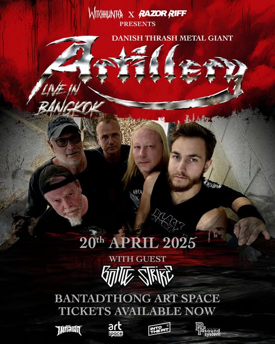 Artillery, founded in 1982, has built a solid international reputation in the metal scene with 13 albums to their name. Their previous tour in 2020 included a stop in Bangkok before continuing to the Philippines, Singapore, New Zealand, Australia, and Russia, where the pandemic ultimately brought global touring to a halt.