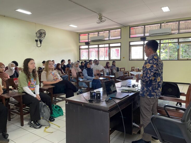 Before the lecture began, the two Danish students introduced themselves to around 40 second-semester students. They then observed the class, which focused on Indonesia’s cultural diversity and classroom teaching methods.