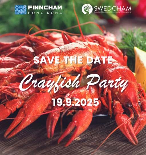 The Finnish Chamber of Commerce in Hong Kong has announced that its annual Crayfish Party, co-hosted with SwedCham, will take place on Thursday 19 September 2025.