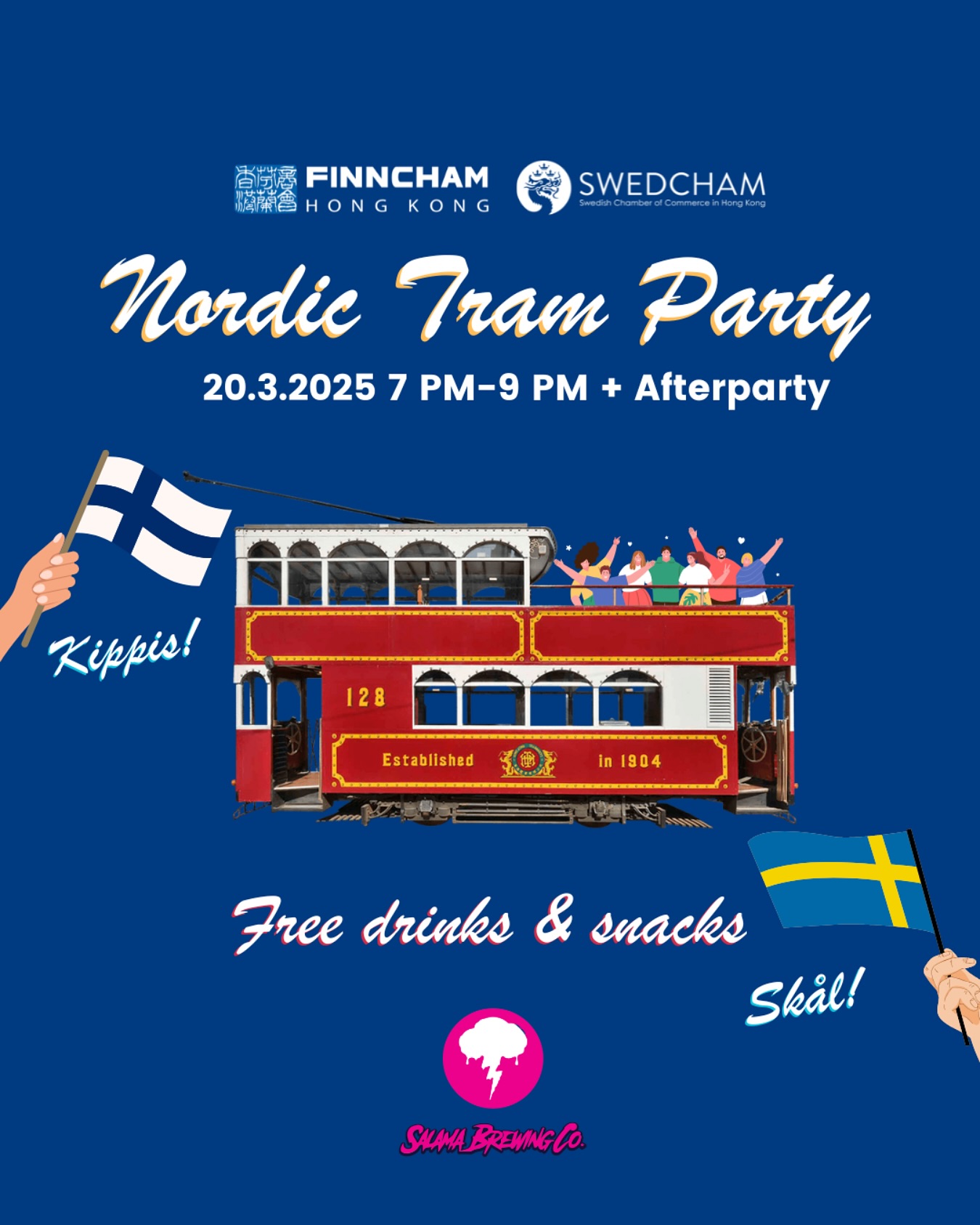 The Finnish and Swedish Chambers of Commerce in Hong Kong are teaming up to present a lively Nordic-themed event on Thursday 20 March 2025—the Nordic Tram Party 2025. Combining networking with entertainment, the event invites participants to sing along to Finnish and Swedish hits while enjoying craft beer from Salama Brewing Company and Nordic snacks aboard a moving tram.