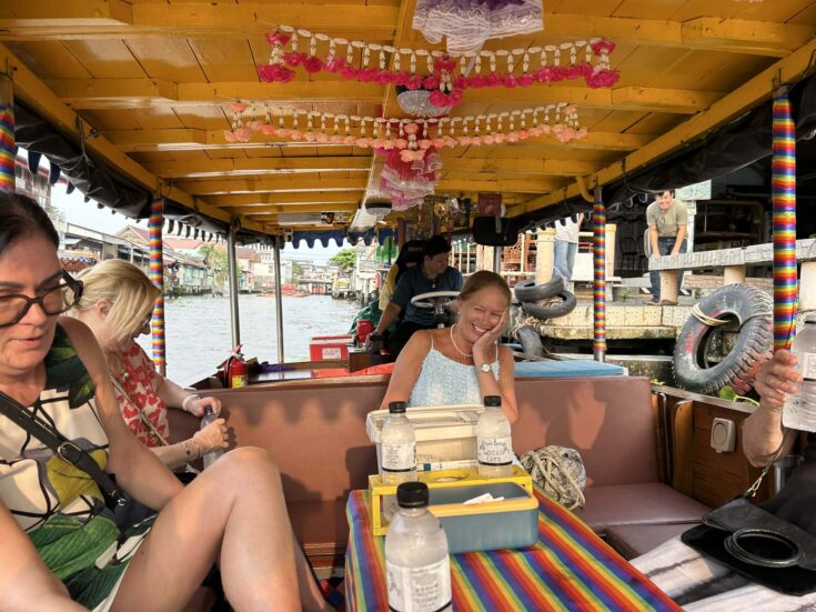 Another highlight was when we took a two hour boat tour organized by Hidden Bangkok. I already knew about this boat trip, but it’s actually worth doing more than once. We entered the boat carrying Prosecco, Chips and plastic glasses, we are always well-prepared ladies.