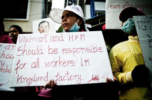 Watch here: a video campaign urging H&M and Walmart – both of which Kingsland had supplied products for, to take steps to help the workers’ plight.