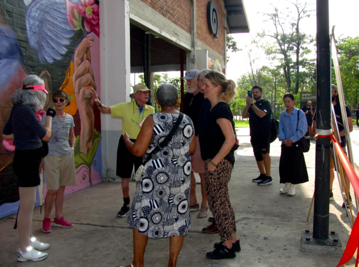 The shade offered a short escape from the Bangkok heat in Bechakitti Park. Under it sat Danish street artist Stine Hvid while people slowly gathered around the newly unveiled murals.