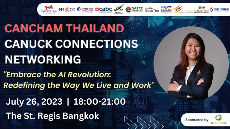 The Thai-Canadian Chamber of Commerce (CanCham Thailand) along with the Thai-Swedish Chamber of Commerce (TSCC), Thai-Finnish Chamber of Commerce (TFCC) and other chambers invite you to join “Multi-Chamber Canuck Connections Networking,” which will be held on Wednesday, 26 July 2023 at the St. Regis Bangkok.