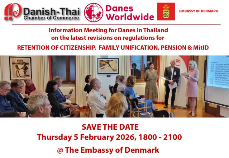 Danes living in Thailand and their families are invited to a joint information meeting in Bangkok on Wednesday 5 February, focusing on key rules and issues affecting Danes abroad.