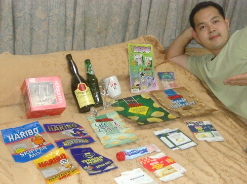 Apart from the envelope from Iceland, Nat collects Danish books, newspapers, magazines and things he found related to Denmark, including empty packages of Danish candies.