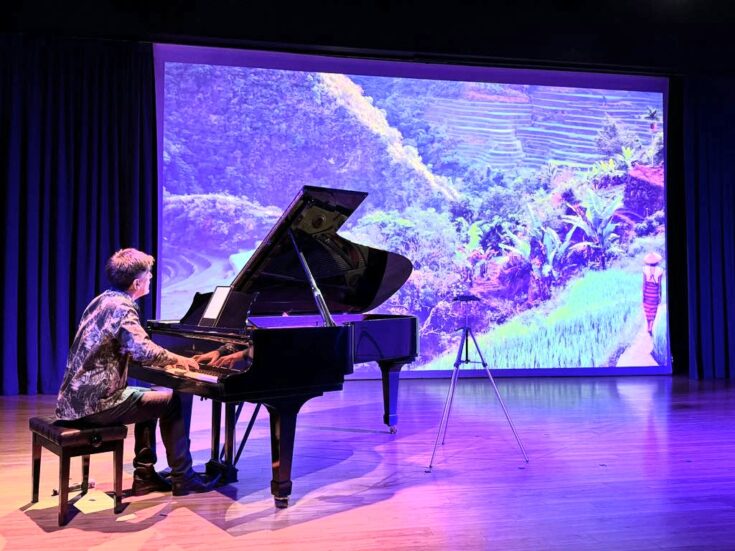 He performed his own compositions for 45 minutes. In the background, paintings were displayed on a screen for each piece-all of them painted by Maestro Frank himself.