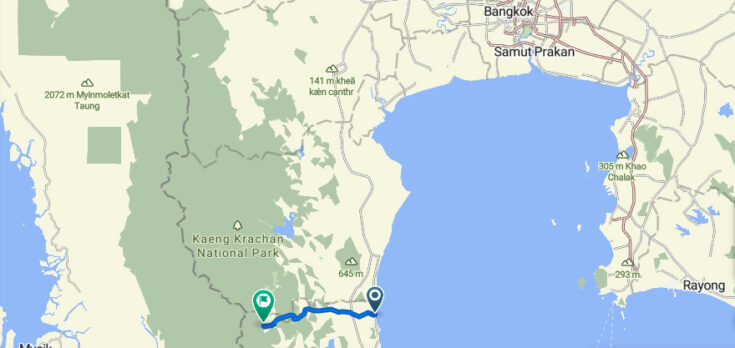 The trip to Pala-U waterfall was one such trip. The waterfall is located in the mountains 60 km west of Hua Hin as part of the Kaeng Krachan National Park. Thailand is quite narrow at this point and beyond the mountains lies Myanmar, only 10 – 15 km away. Every day, airborne border police fly their helicopters over the national forest to check for illegal immigrants.