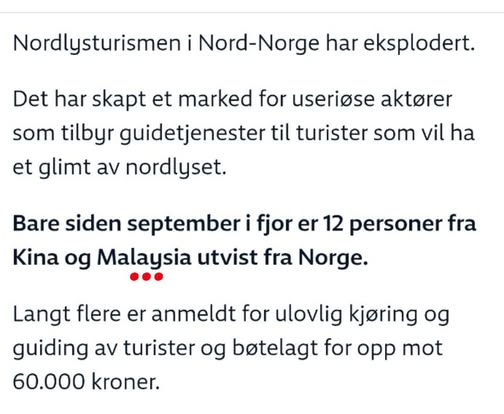 Norwegian police say the illegal tours have become highly profitable as Northern Lights tourism surges, particularly among Asian visitors.