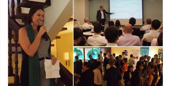 The evening included a series of short briefs on possibilities for Norwegian start-ups in Singapore. Øyvind Haga from Innovation Norway, Thor Hansen from Mikritho, Steinar Korsmo from Seed Forum, Alf Kenneth Bråthen from Roseberg and Prof Arcot Desai Narasimhalu, Director of the Institute of Innovation and Entrepreneurship of the Singapore Management University shared insights on entrepreneurship and business development in an Asia setting.