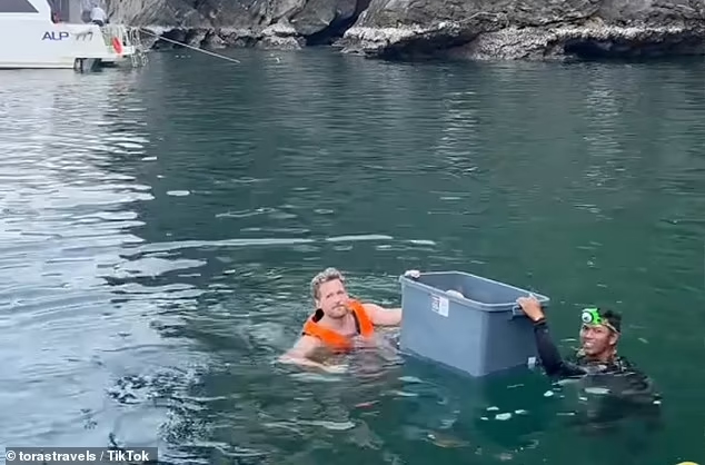 In response, the couple explained that their guide had approved the method, ensuring the bin was properly secured with floating vests underneath.