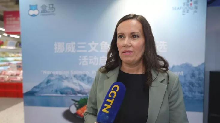 Norway’s Fisheries and Ocean Policy Minister Marianne Sivertsen Naess visited Beijing on Sunday. She attended a launch event for a seafood cooperation project with Alibaba’s Freshippo supermarket chain. At the event, she pledged to further strengthen seafood trade cooperation with China.