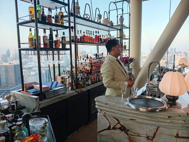 I must say, I was quite impressed by the new building. You still have a nice bar in the lobby and Thai decorations. The staff was extremely welcoming and polite. I just wanted to take a look I explained and immediately I was escorted around. There are two high floor bars, one is called SPIRE Rooftop Bar, a very inviting bar where you can dine and/or just go there to sip on a fancy cocktail or enjoy a glass of wine. The view is breathtaking and you can admire almost the whole Lumpini Park. The other bar is called 1970, a nostalgic name I was told. In short, there will be a 3rd smaller bar opening and specializing in signature cocktails.