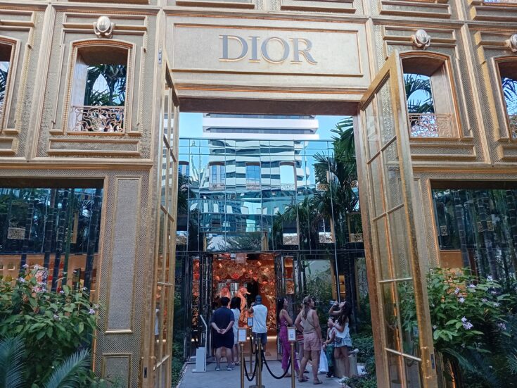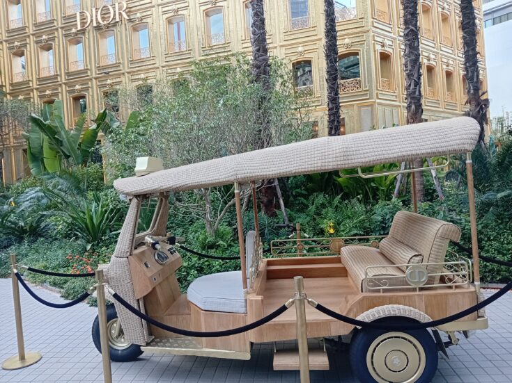 Close to Central Embassy at Chit Lohm, I passed the new Christian Dior shop. This exclusive store is behind a very attractive façade in a gold tone and a DIOR sign in big letters. The shop also has its own tuk tuk, a very elegant one.