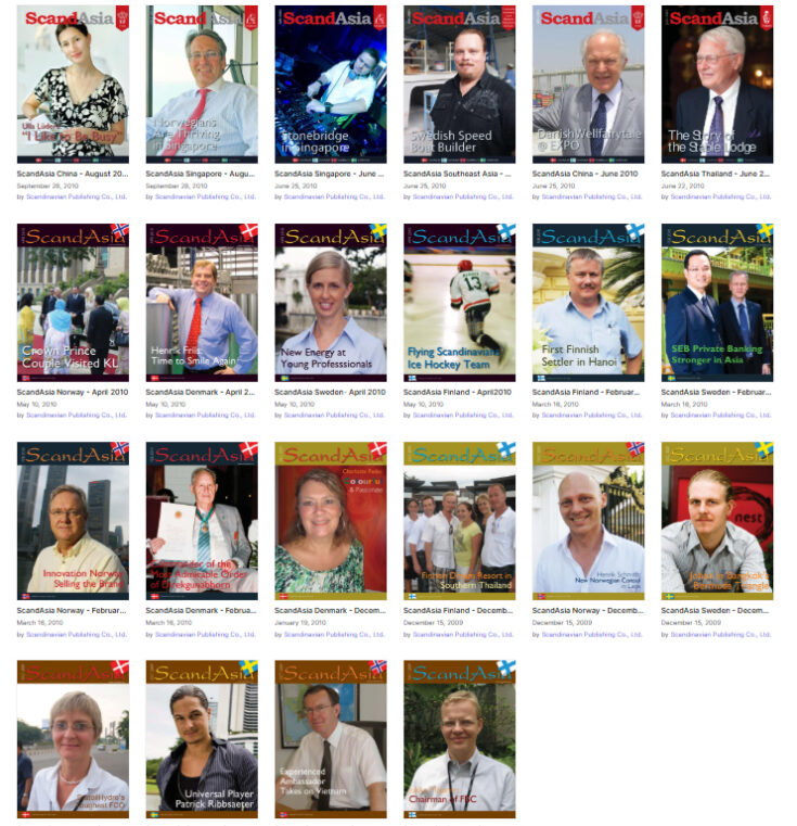 Since 2009, ScandAsia has published 364 ScandAsia publications on Issuu, plus 13 editions of Thailand Expat Guide and 49 issues of Thai-Danish Trade News publishhed for the Danish Thai Cham ber of Commerce and 13 issues of the Thai Sweden Review published for the Thai-Swedish Chamber of Commerce.