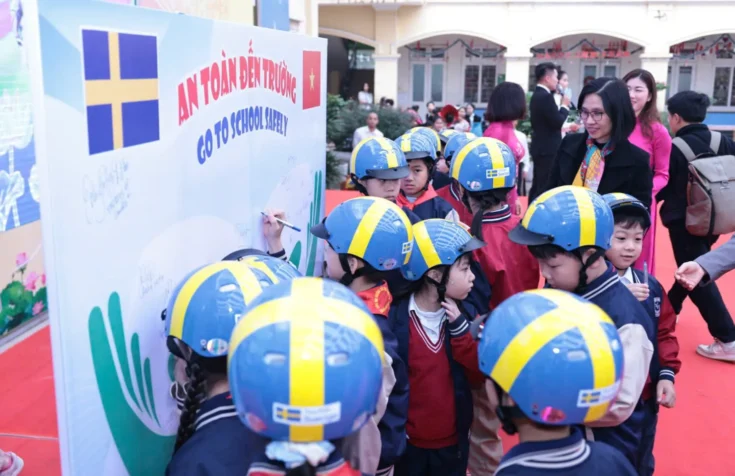 Sweden is promoting child road safety in Vietnam through a school-based campaign focused on proper helmet use, inspired by the Swedish Vision Zero approach.