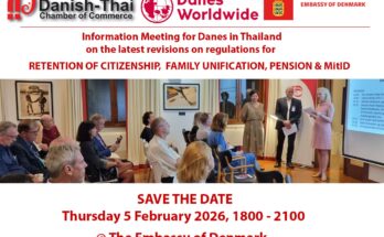Danes living in Thailand and their families are invited to a joint information meeting in Bangkok on Wednesday 5 February, focusing on key rules and issues affecting Danes abroad. The …