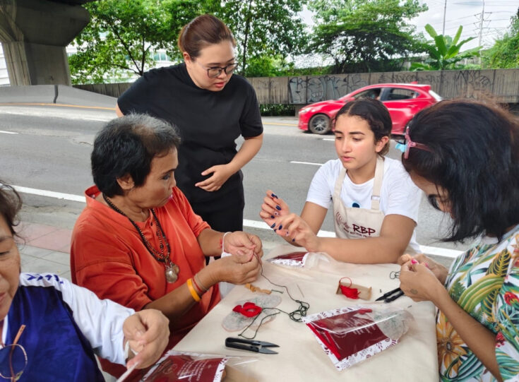 Founded after the sisters encountered a marginalised deaf community living under Bangkok’s Rama 9 bridge, the Rock Bottom Project began with small-scale art therapy sessions. Over time, it evolved into a community-based platform offering training in embroidery and crafts, with support from local volunteers and schools.