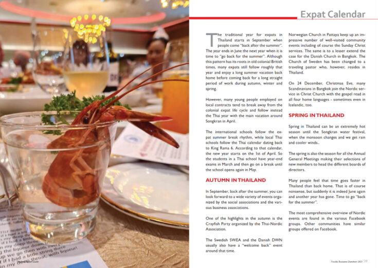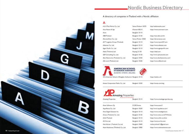 The “Nordic Business Directory” at the back of the guide book remains, however a very popular section. The listing is the only comprehensible directory of companies in Thailand that originate from or are in other ways related to the Nordic business community here.