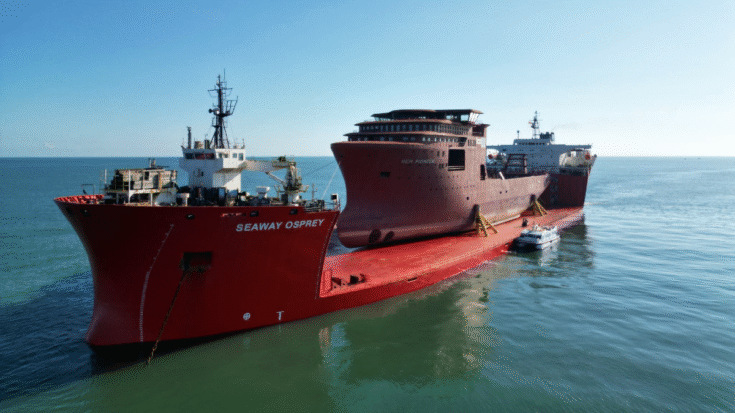 According to Norwegian ship designer Skipsteknisk, the vessel’s hull—built by Vietnam’s Song Cam shipyard—has been loaded onto the heavy-lift vessel Seaway Osprey for transport from Haiphong to Norway, where final outfitting will take place at Myklebust Verft.