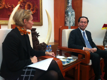 Senior Lt. Gen. Tran Dai Quang, Vietnam’s Minister of Public of Public Security, on Jan 22 warmly welcomed Ambassador Mellander to Vietnam and congratulated her as the first Ambassador stationed in Hanoi after the decision of retaining the embassy was made in 2011.